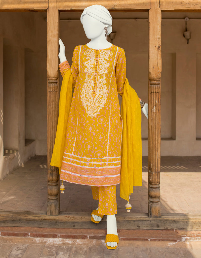 YELLOW 3PC UNSTITCHED | JLAWN-S-US-23-456 RIWAYAT-2