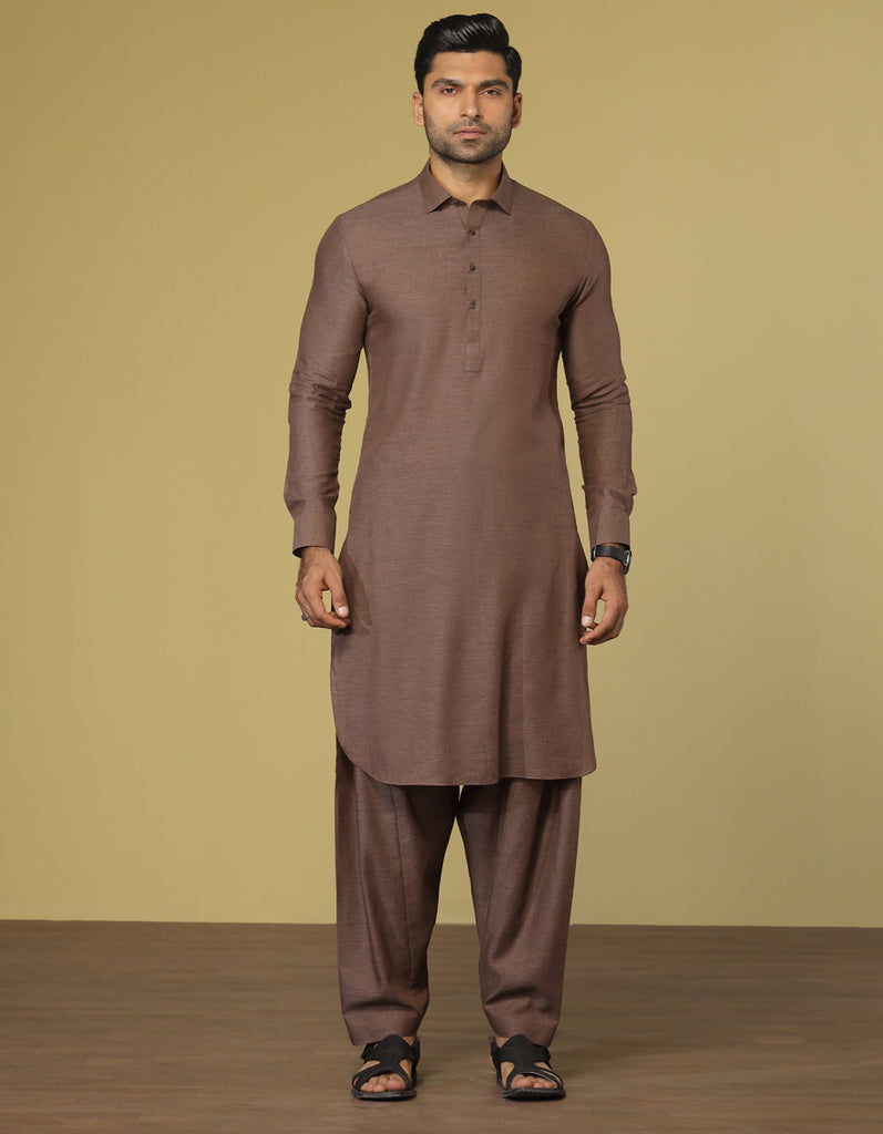 WOOLEN BROWN BLENDED KAMEEZ SHALWAR | JJKS-S-US-36922/S22/JJ7639-PN