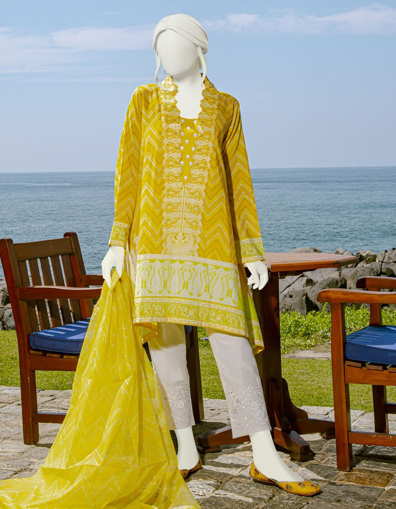 YELLOW GREEN 3PC UNSTITCHED | JLAWN-S-US-22-172 MUGHAL ARCHIVES