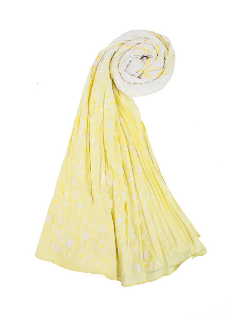 YELLOW-OFF WHITE LAWN STOLE | JLST-S-STL-US-21-2625 FB/STL-21-007