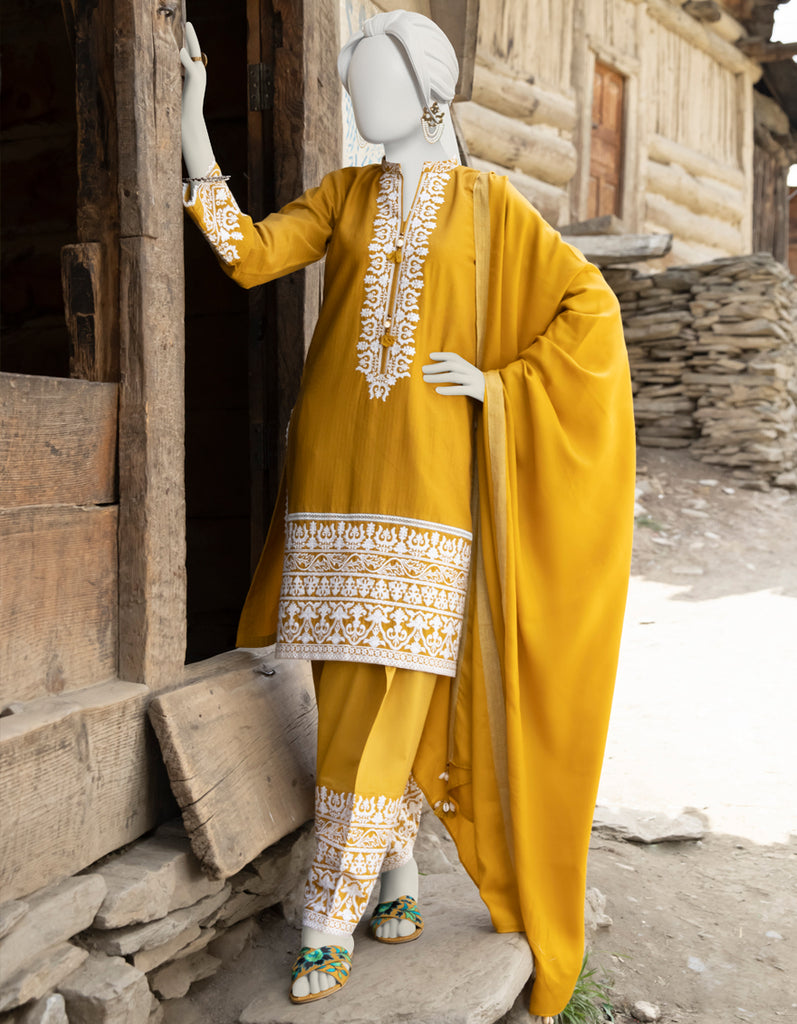 YELLOW YARN DYED 3PC STITCHED | JJPW-W-JPWS-US-22-480 FB/JASHAN