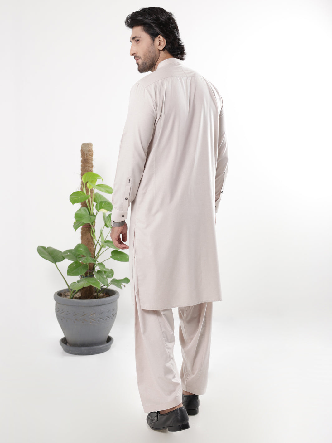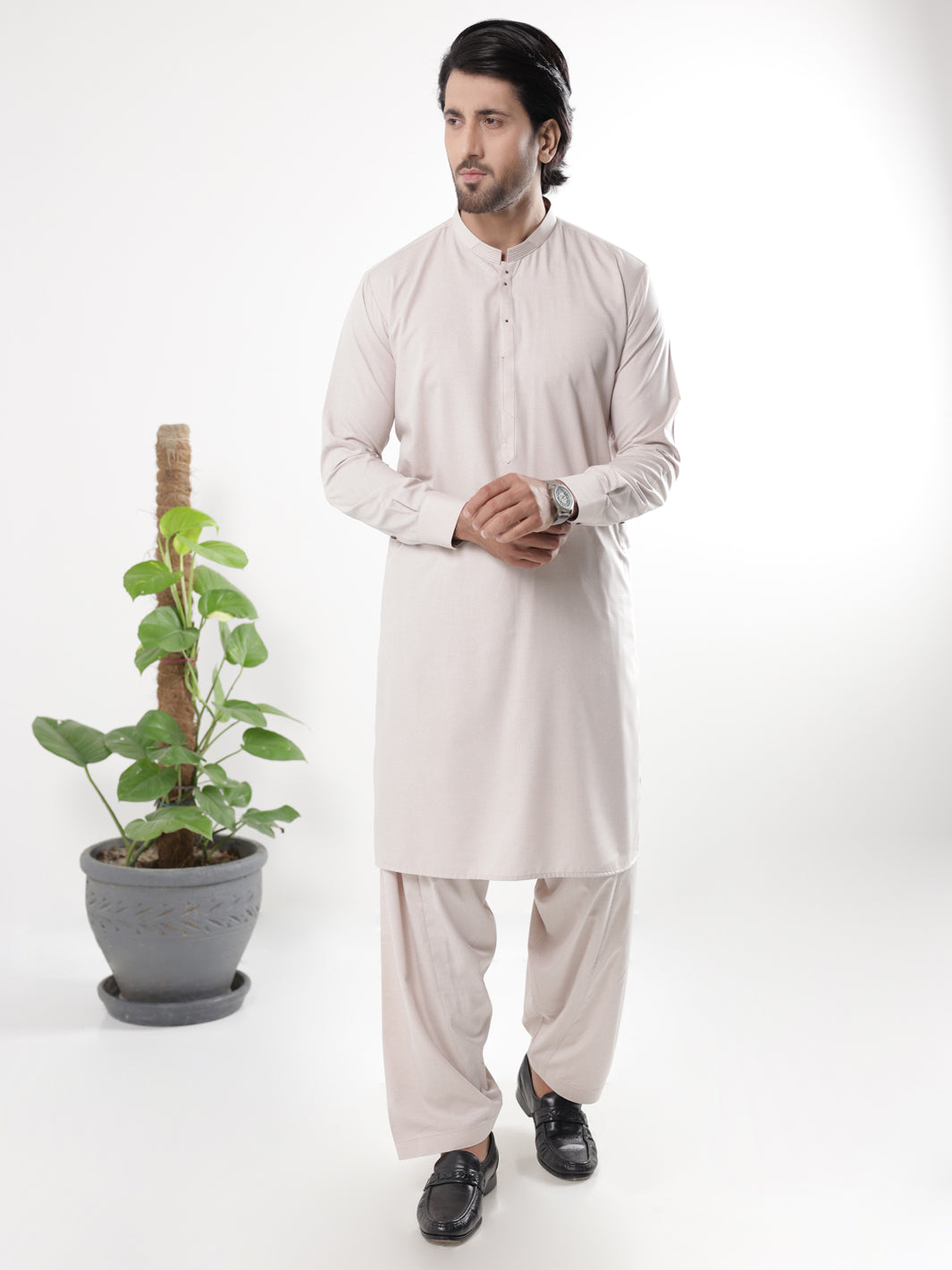Kameez Shalwar Featuring A Pleated Collar With Asymmetric Details On The Placket
