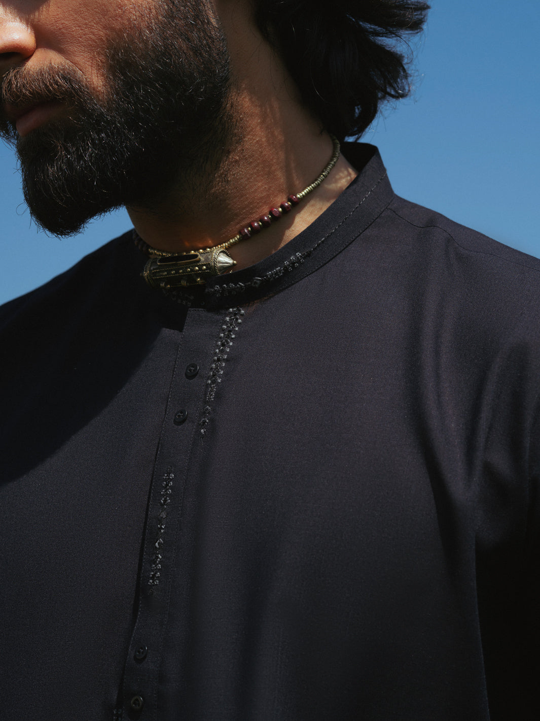 BLACK BLENDED KAMEEZ SHALWAR | AL-KS-3217B/AM-6303B