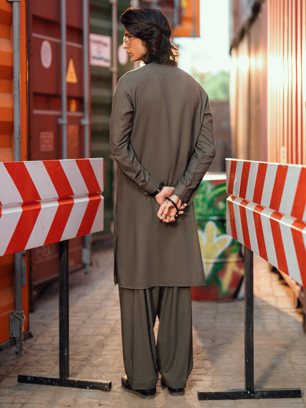 A Classic Cut-And-Sew Kameez Shalwar Crafted With Refined Tailoring and Modern Detailing.