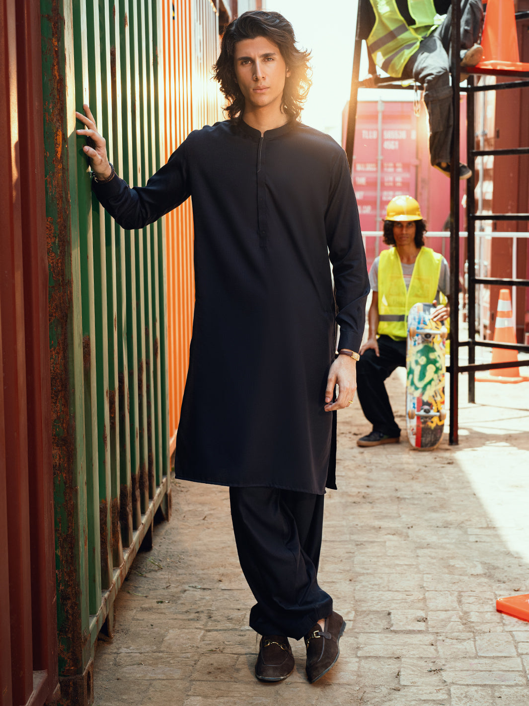 Classic Kameez Shalwar Designed With Cut-And-Sew Accent Details on the Placket