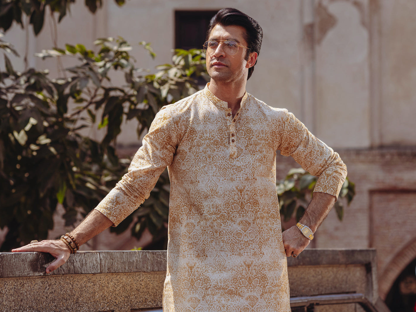 Smart fit kurta with digitally printed textures all over