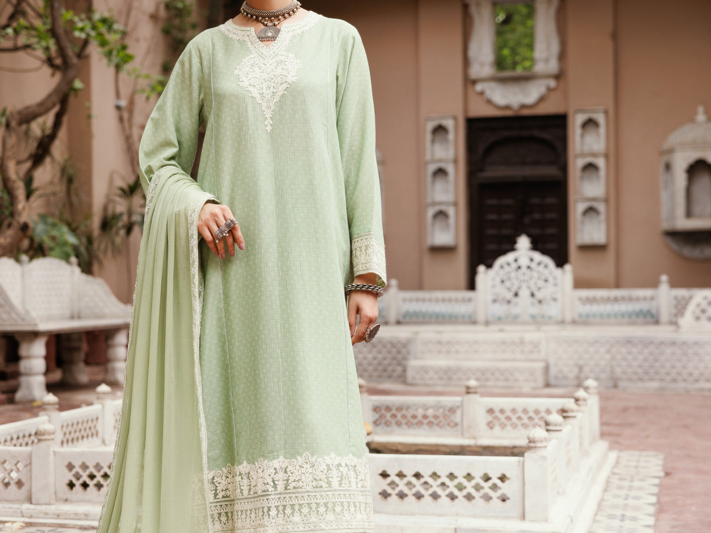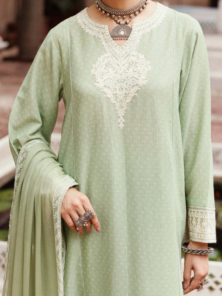 LIGHT GREEN COTTON DOBBY 3PC STITCHED | ALP-3PS-2049/S FB-2049A