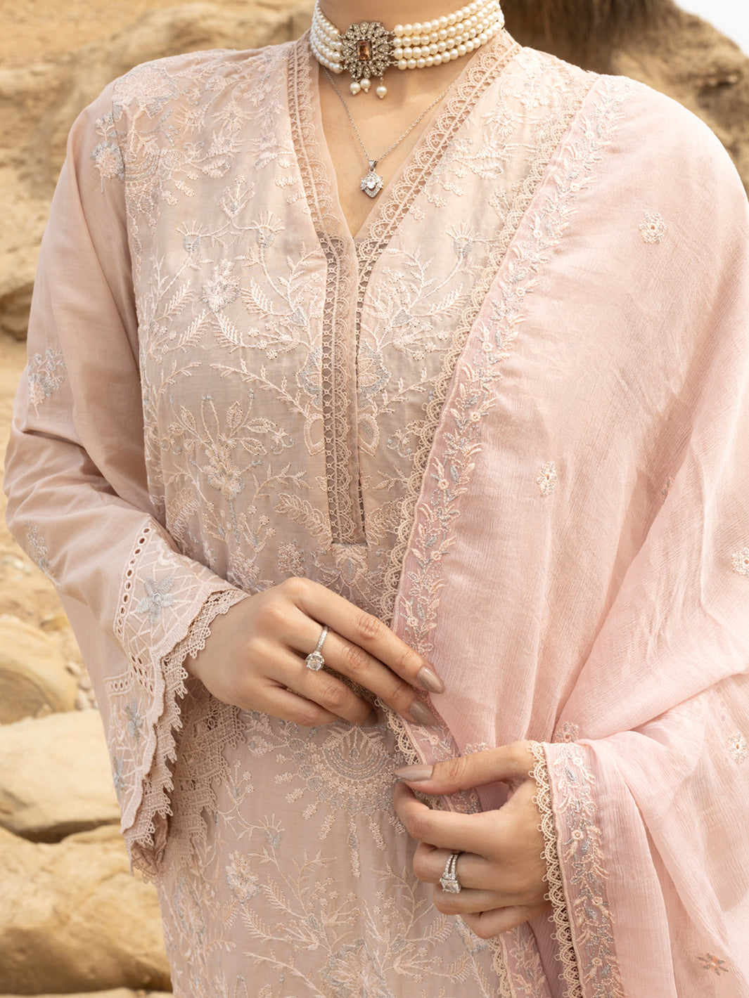 Lawn Schiffli Embroidered Shirt With Lace Details On Neckline And Daman