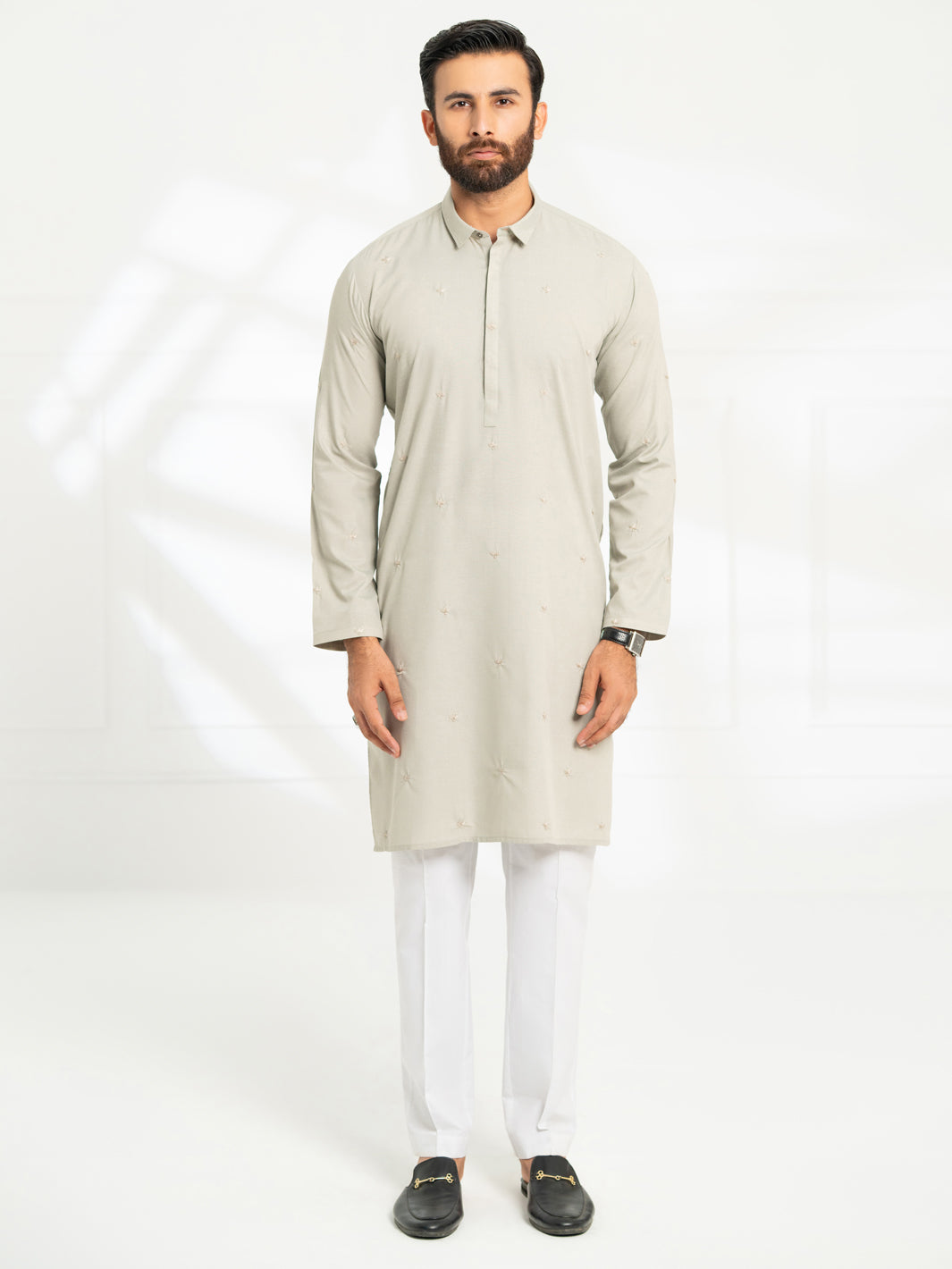 An Exquisitely Tailored Semi-Formal Kurta Adorned With Intricate Embroidered Detailing