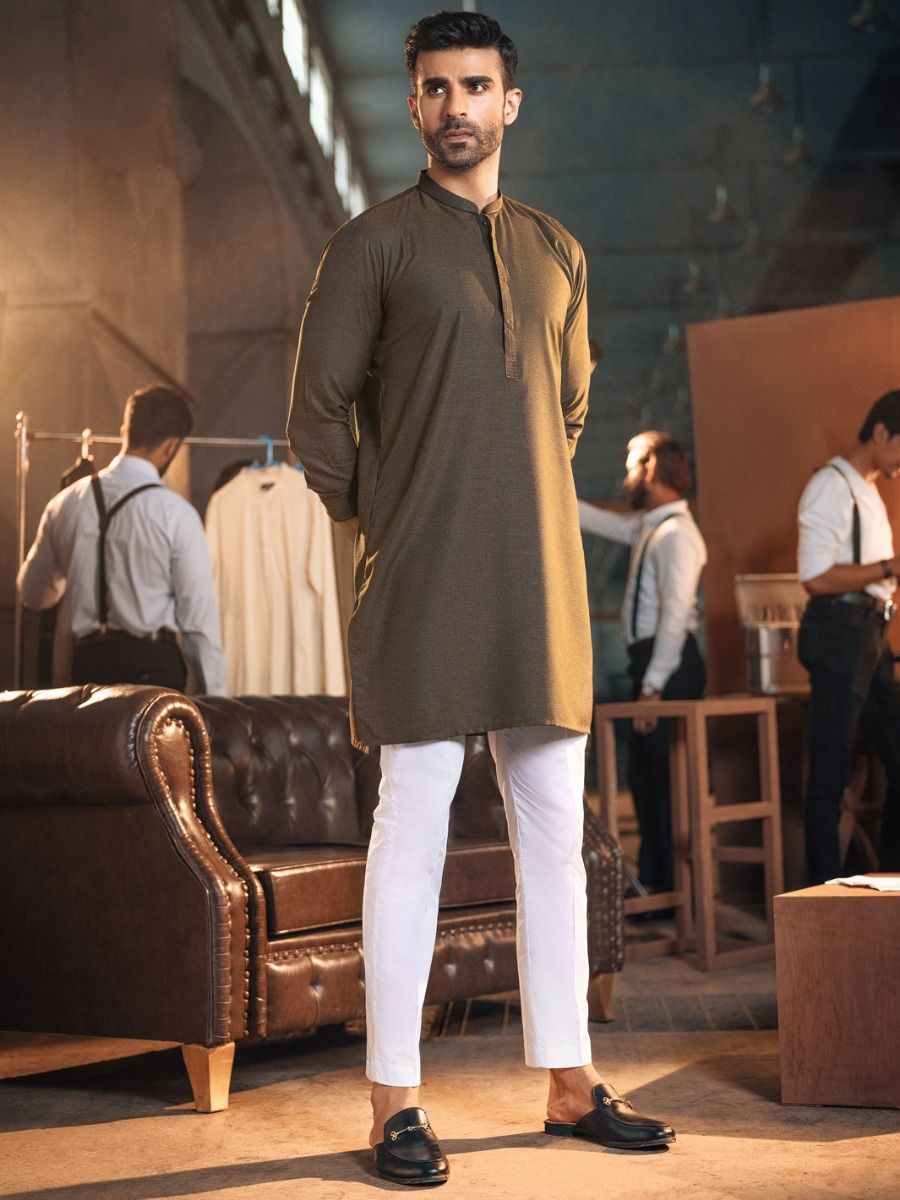 OLIVE VISCOSE KURTA | AL-K-US-978/AM-5041E
