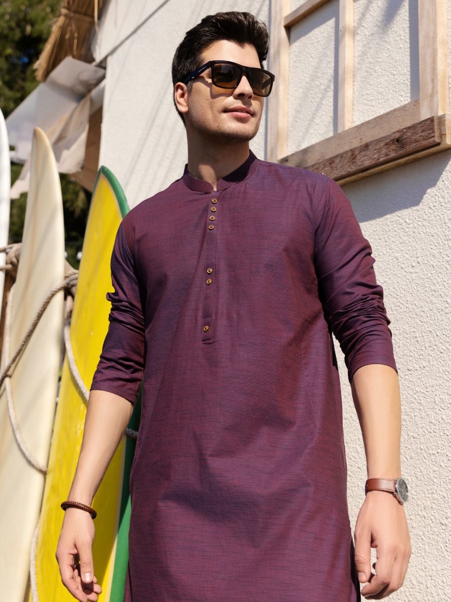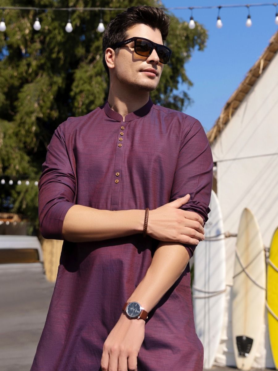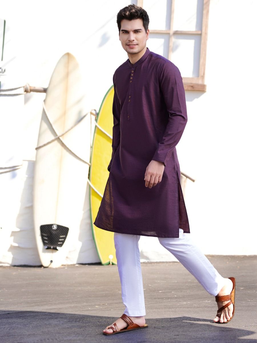 Purple Kurta Stitched With Buttons Details On Front