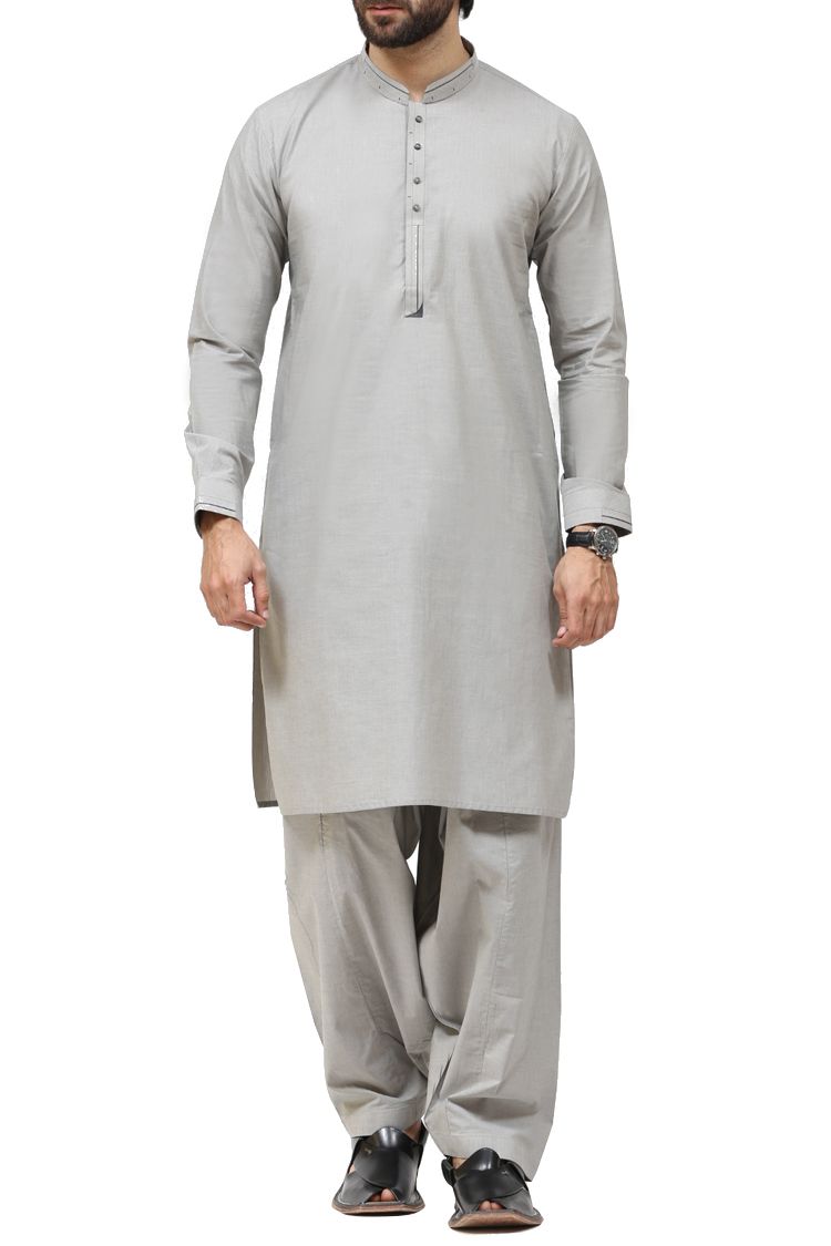 LIGHT GREY COTTON KAMEEZ SHALWAR | AL-KS-US-2427/AM-636A