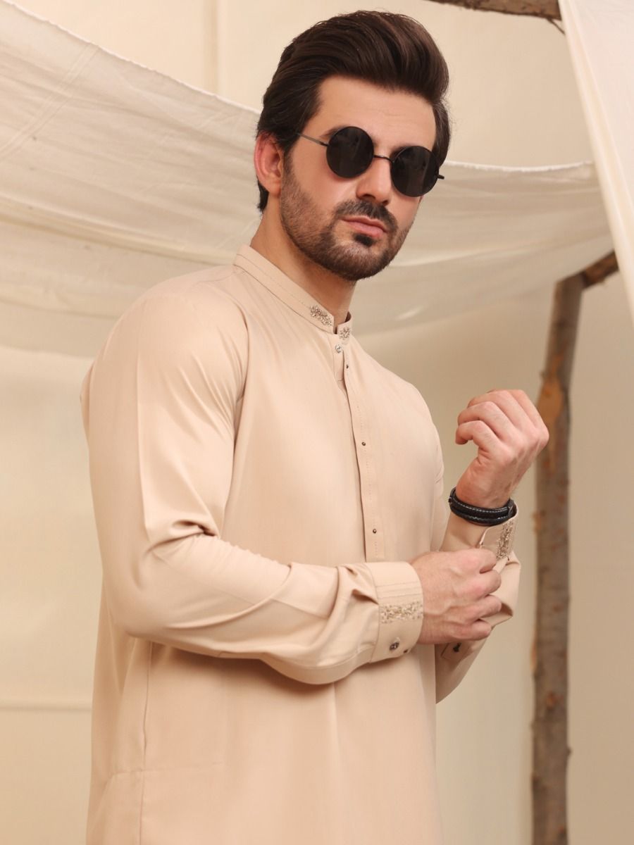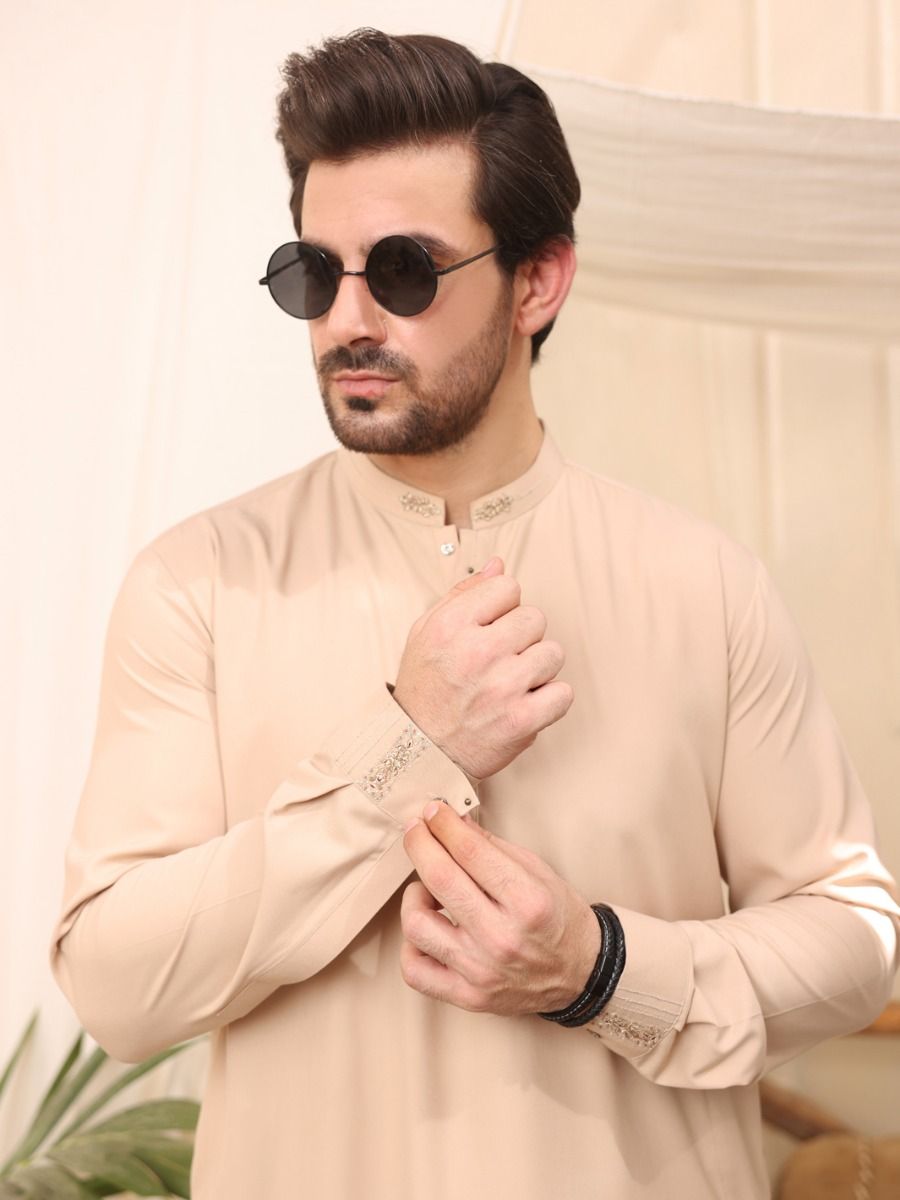 Semi-Formal Kurta Shalwar With Embroidery On Placket And Cuffs.
