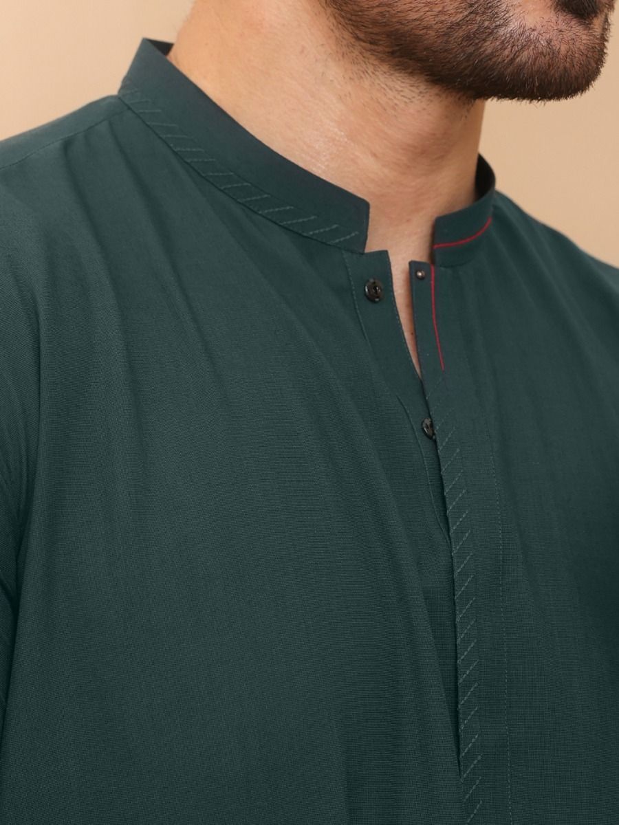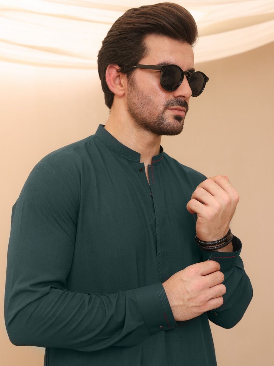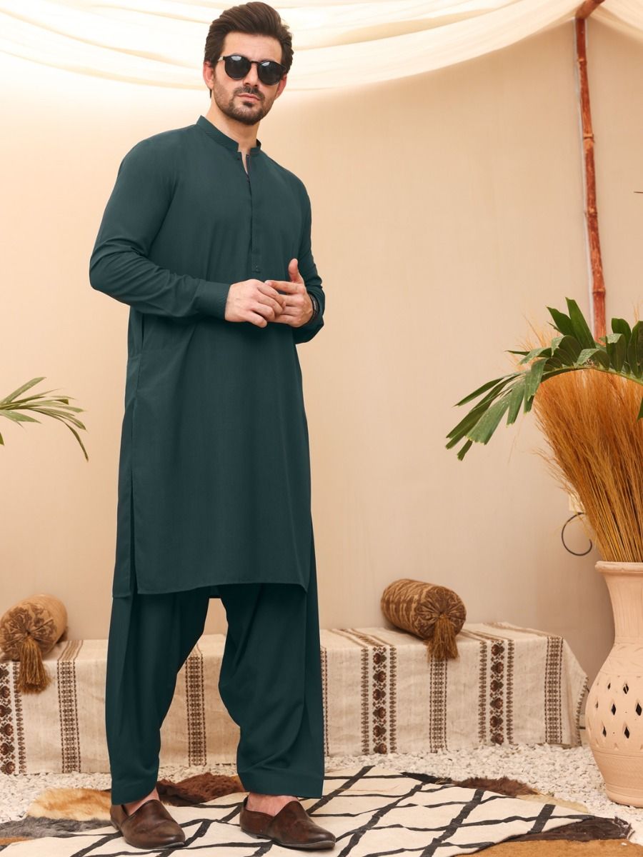 Cut And Sew Kameez Shalwar With Cuts And Sew Details On Collar Placket And Cuffs.
