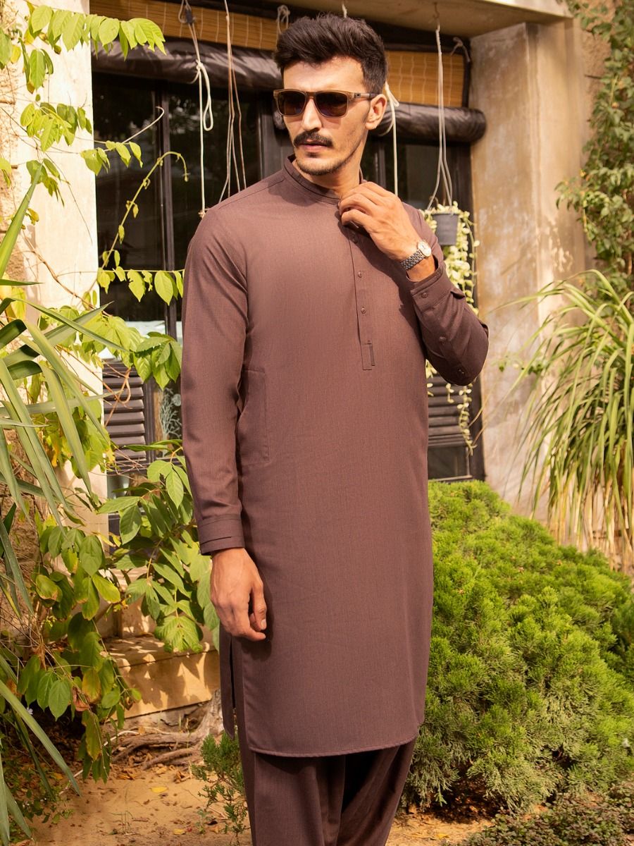Kameez Shalwar Stitched With Cut And Sew Details On Collar Cuffs And Placket.