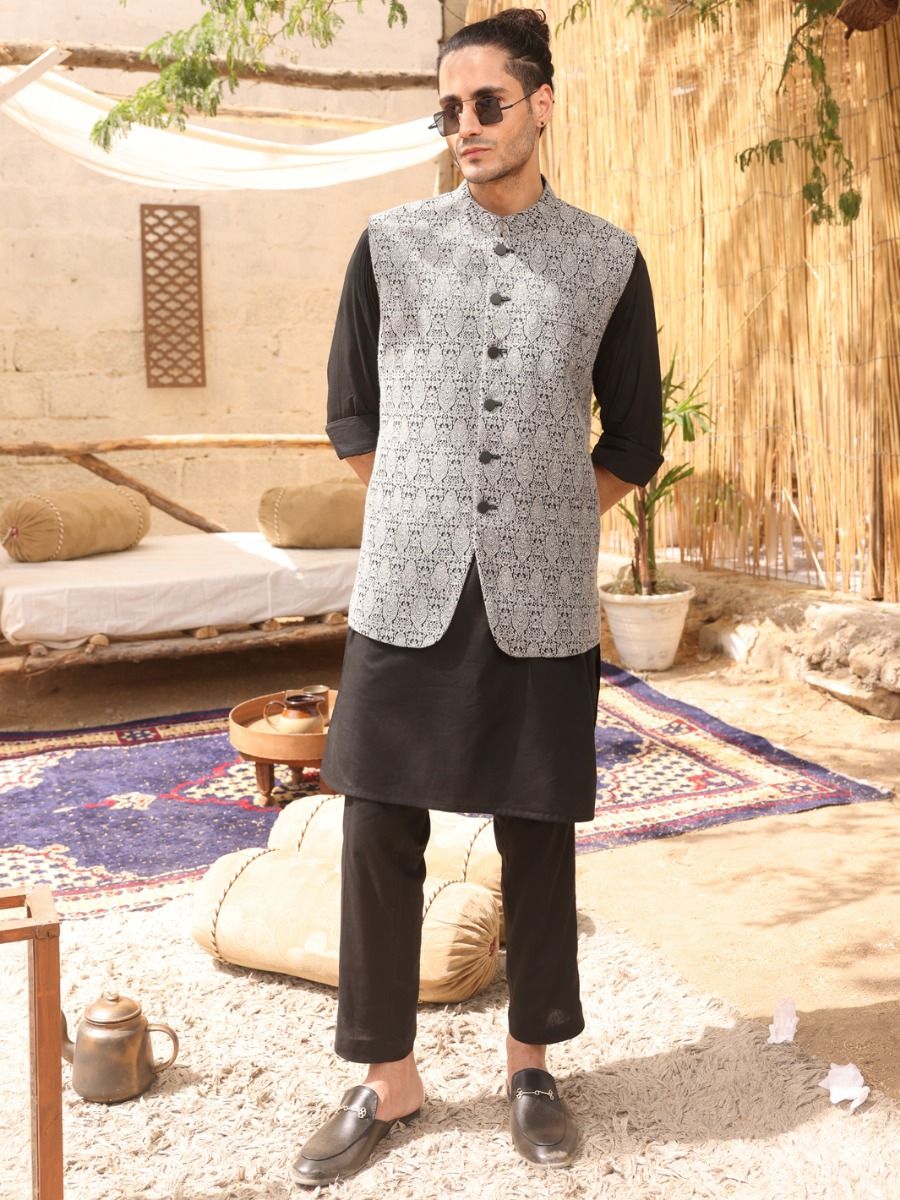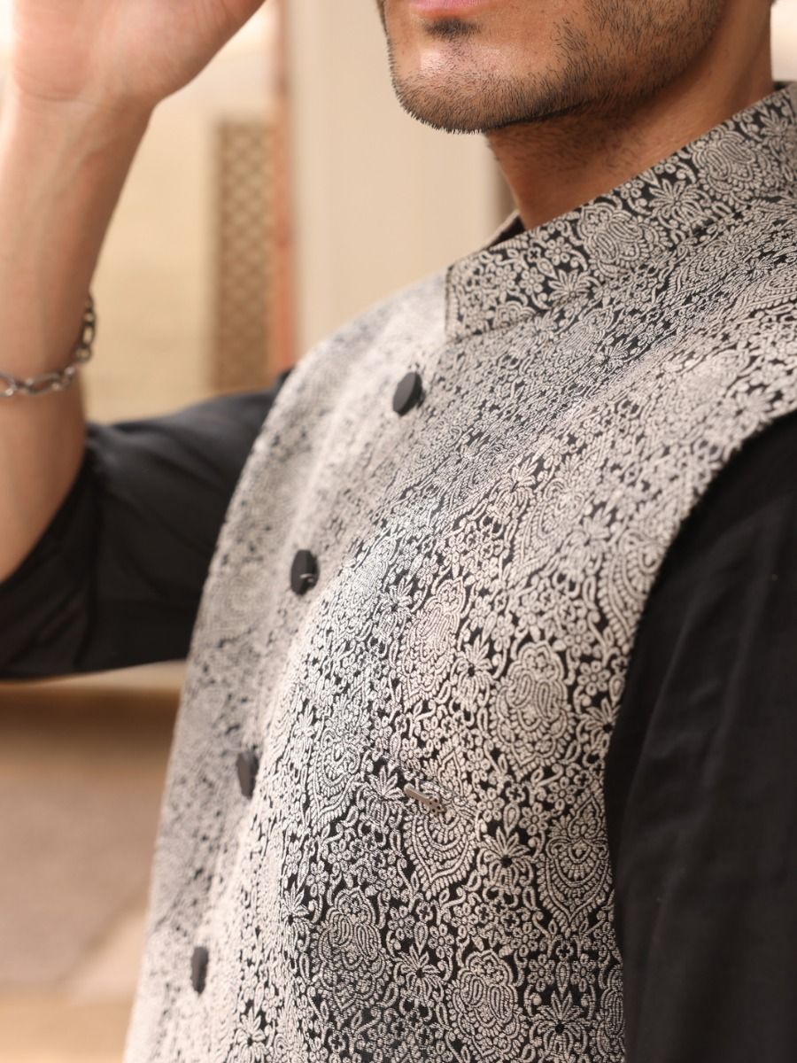 Plain Waist Coat Stitched In Jacqaurd Fabric