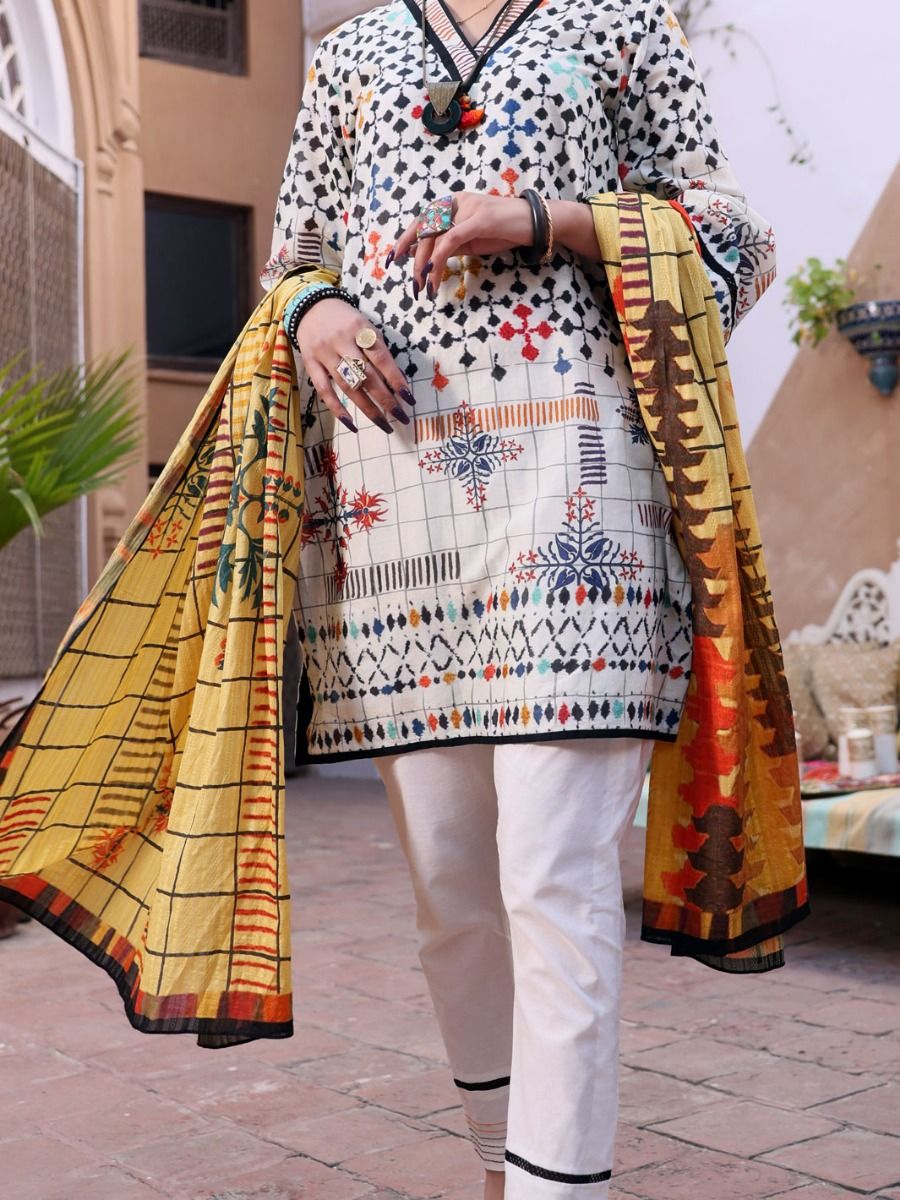 IVORY LAWN 3PC UNSTITCHED | ALP-3PS-US-1083 V-2 2021