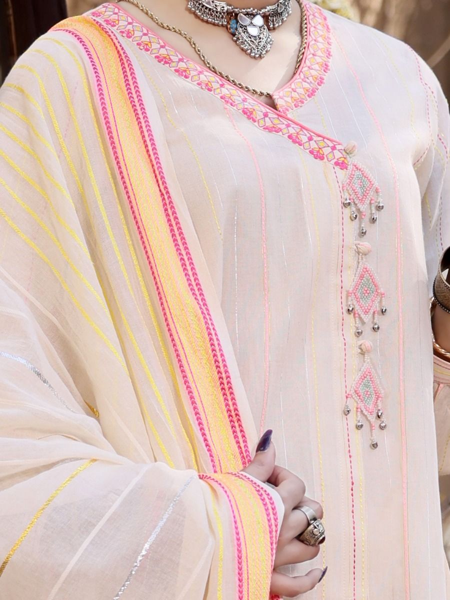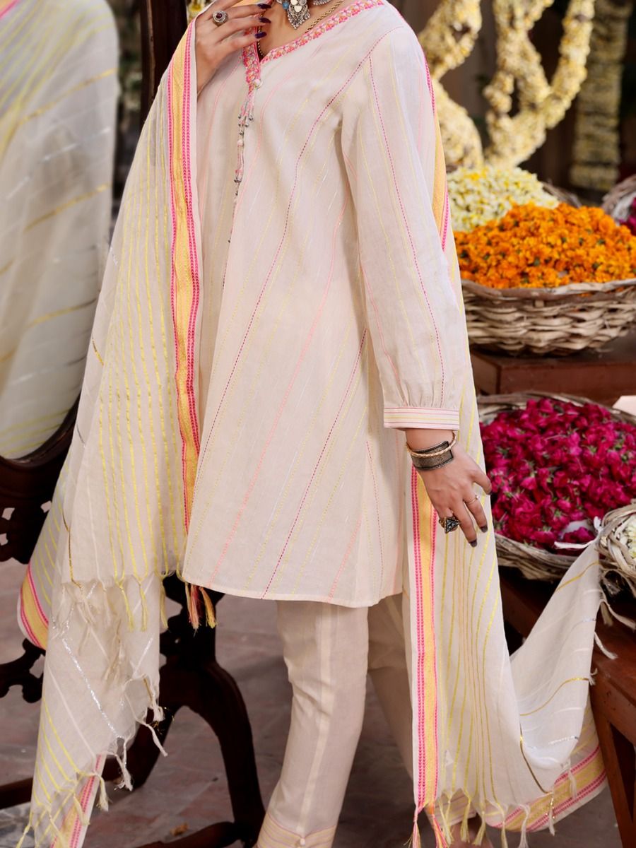 OFF WHITE YARN DYED 3PC UNSTITCHED | ALP-3PS-US-1094 FB-1094A