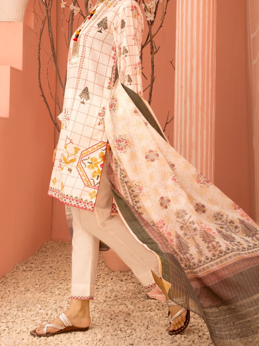 Straight Style Basic Shirt Detail With Laces & Tassels. Paired With Lawn Dupatta & cigarette Pants.
