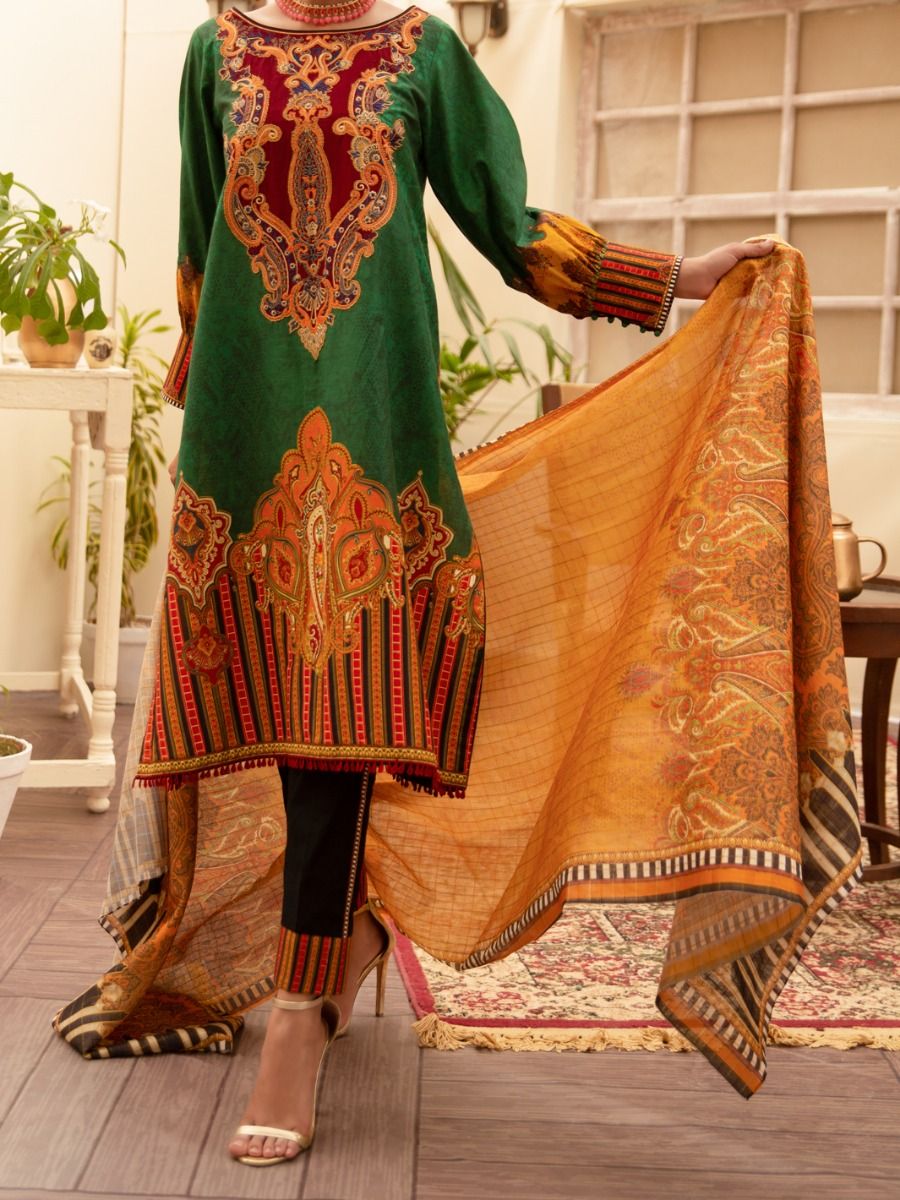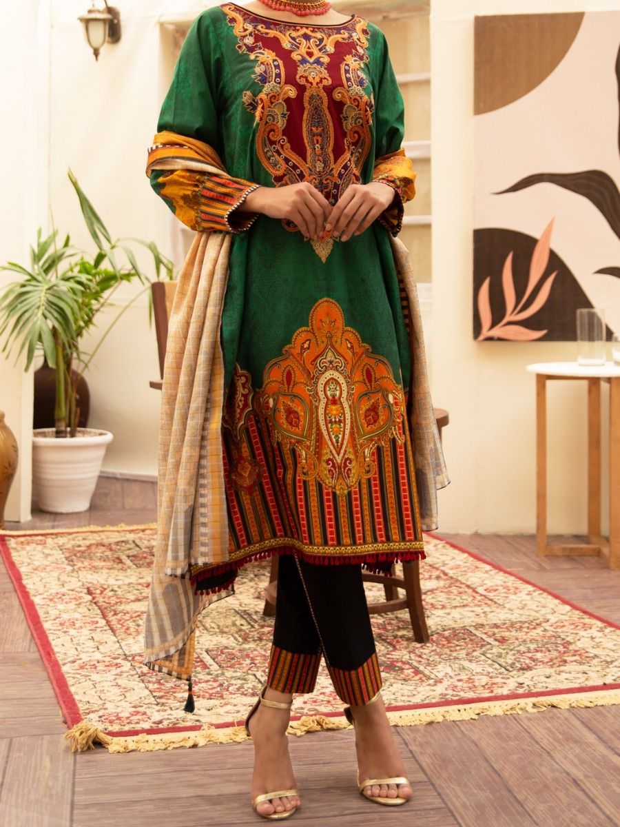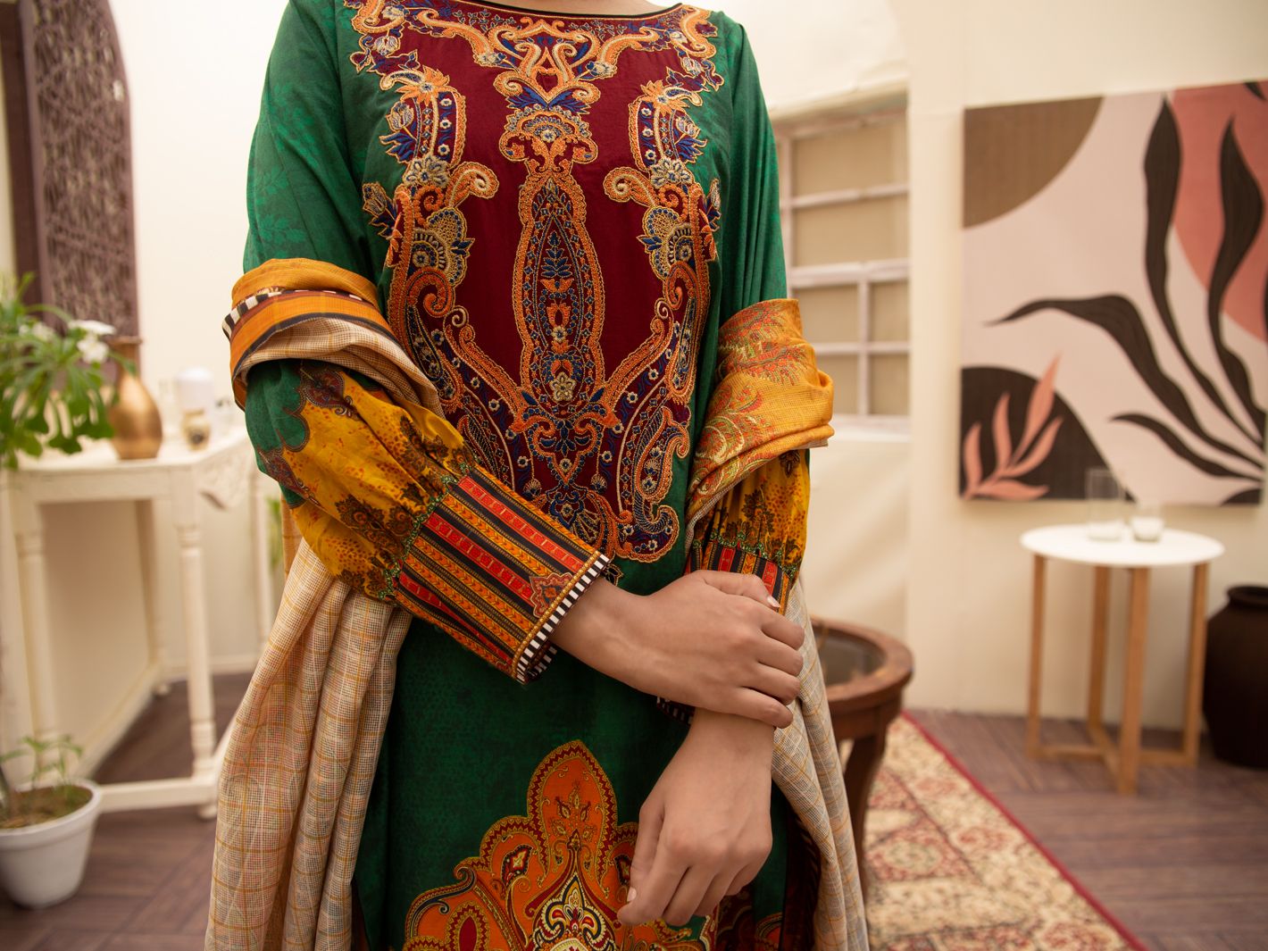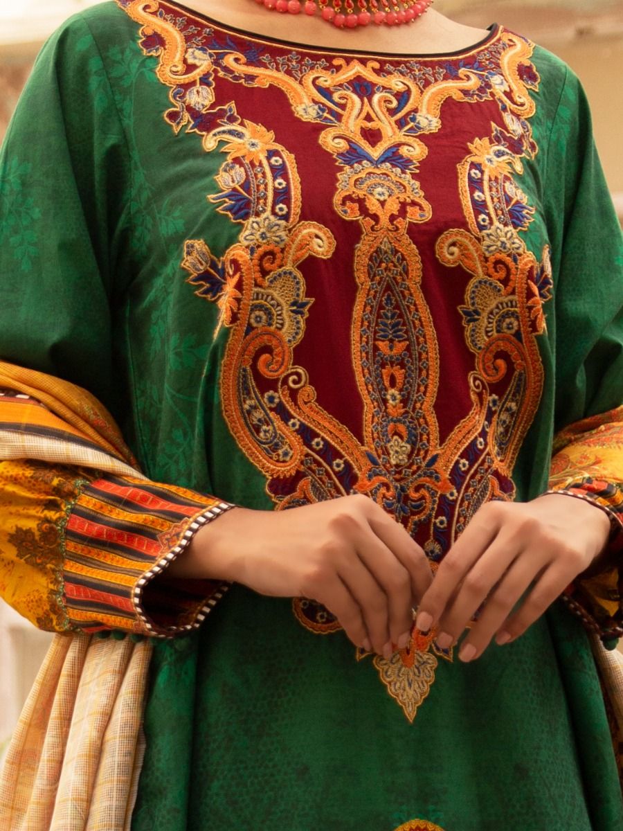 GREEN CAMBRIC 3PC UNSTITCHED | ALP-3PS-US-1177 FB-1177A