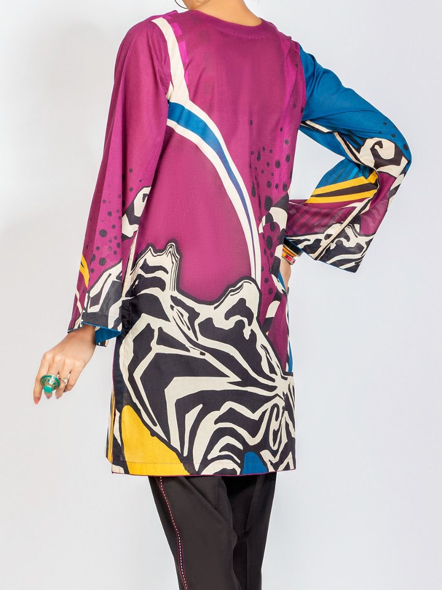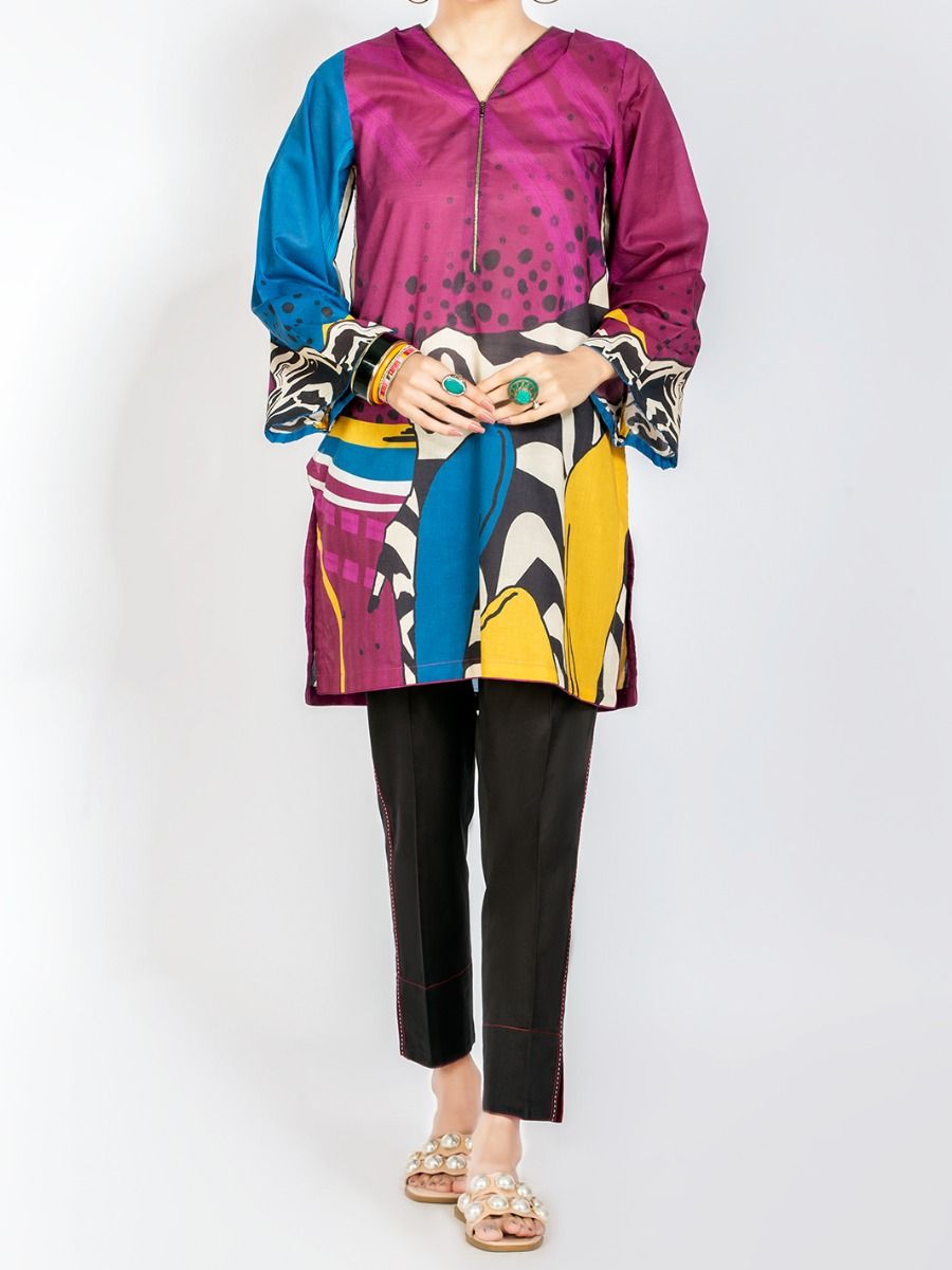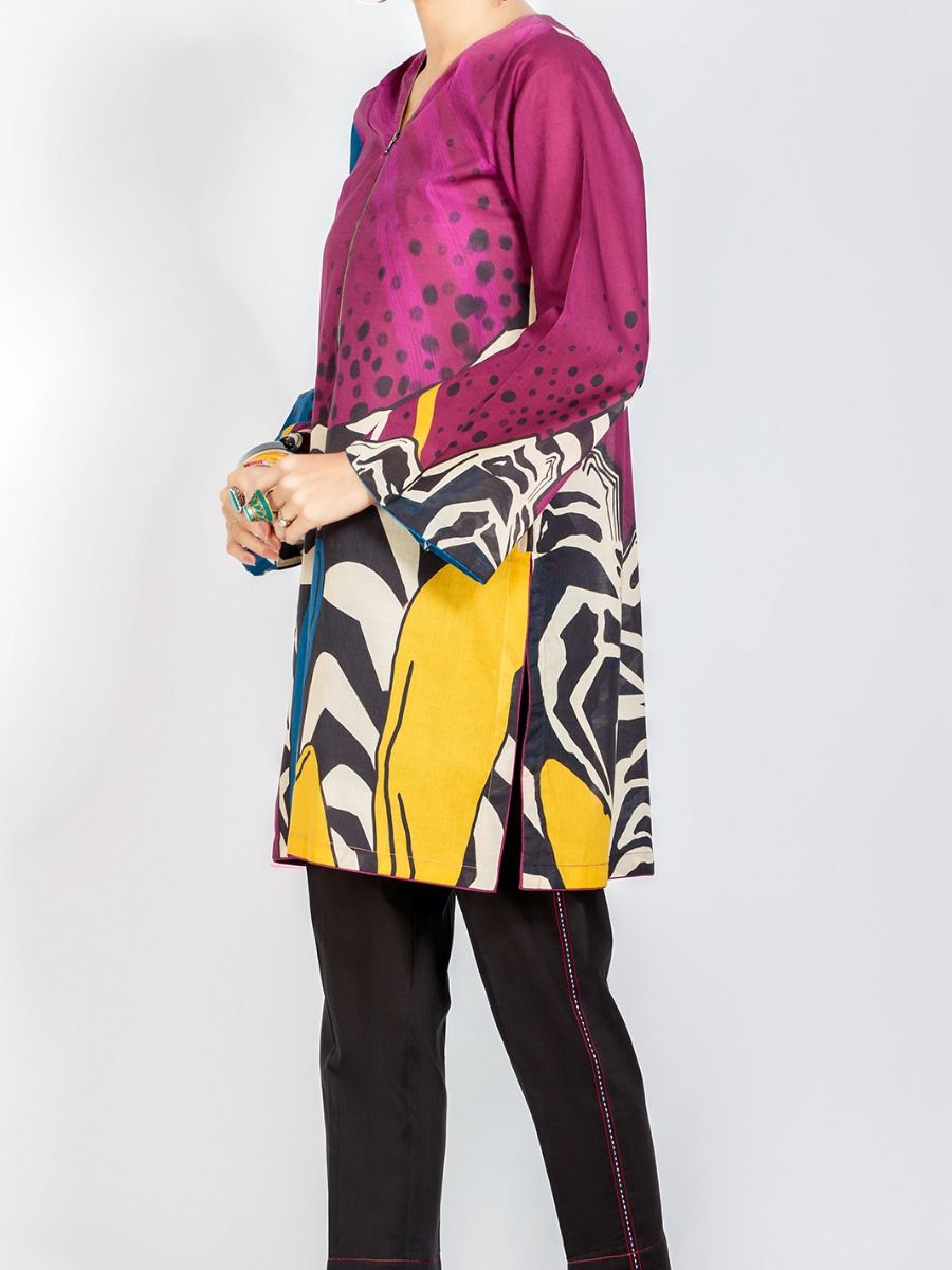 Vibrant Lawn Digital Printed Kurti With Metal Zip Detail On Neckline