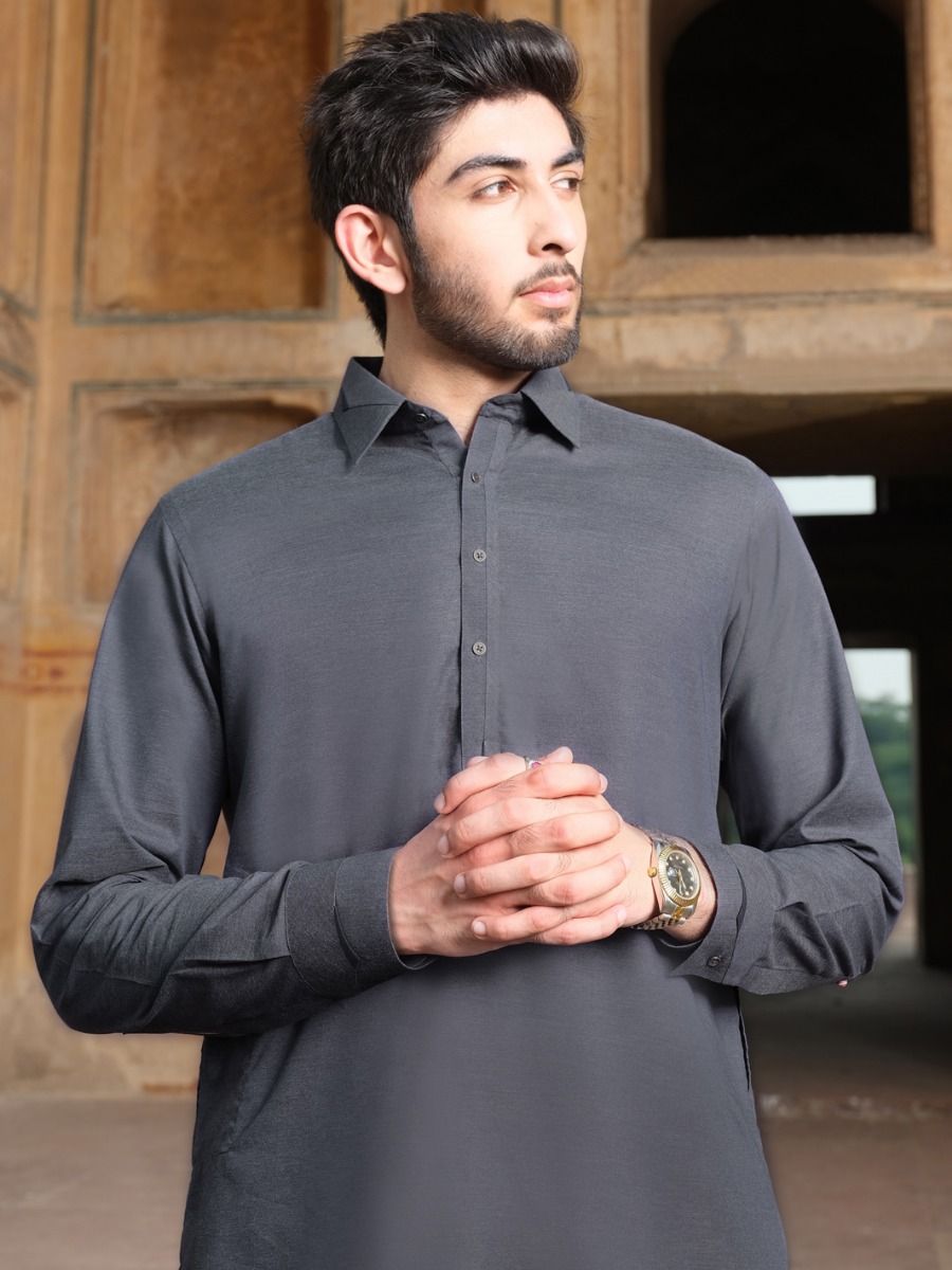 Classic Fit Kameez Shalwar Stitched In Premium Blended Fabric With Shirt Collar.