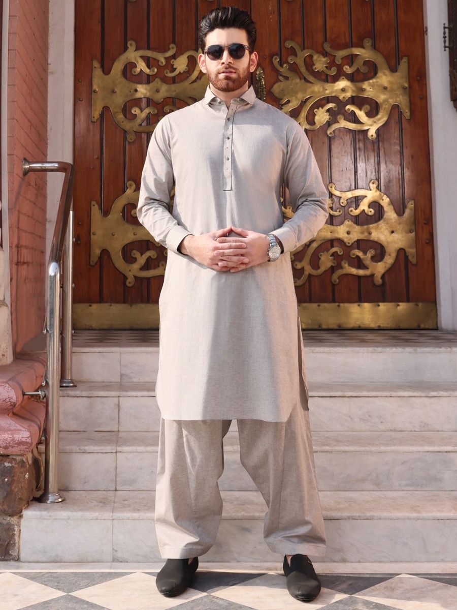 Classic Fit Kameez Shalwar Stitched In Premium Cotton Fabric With Shirt Collar.