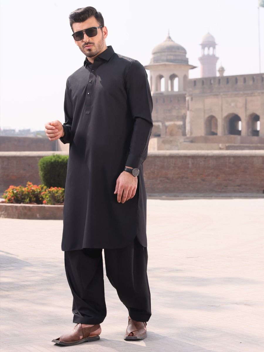 Classic Fit Kameez Shalwar Stitched In Premium Blended Fabric With Shirt Collar.