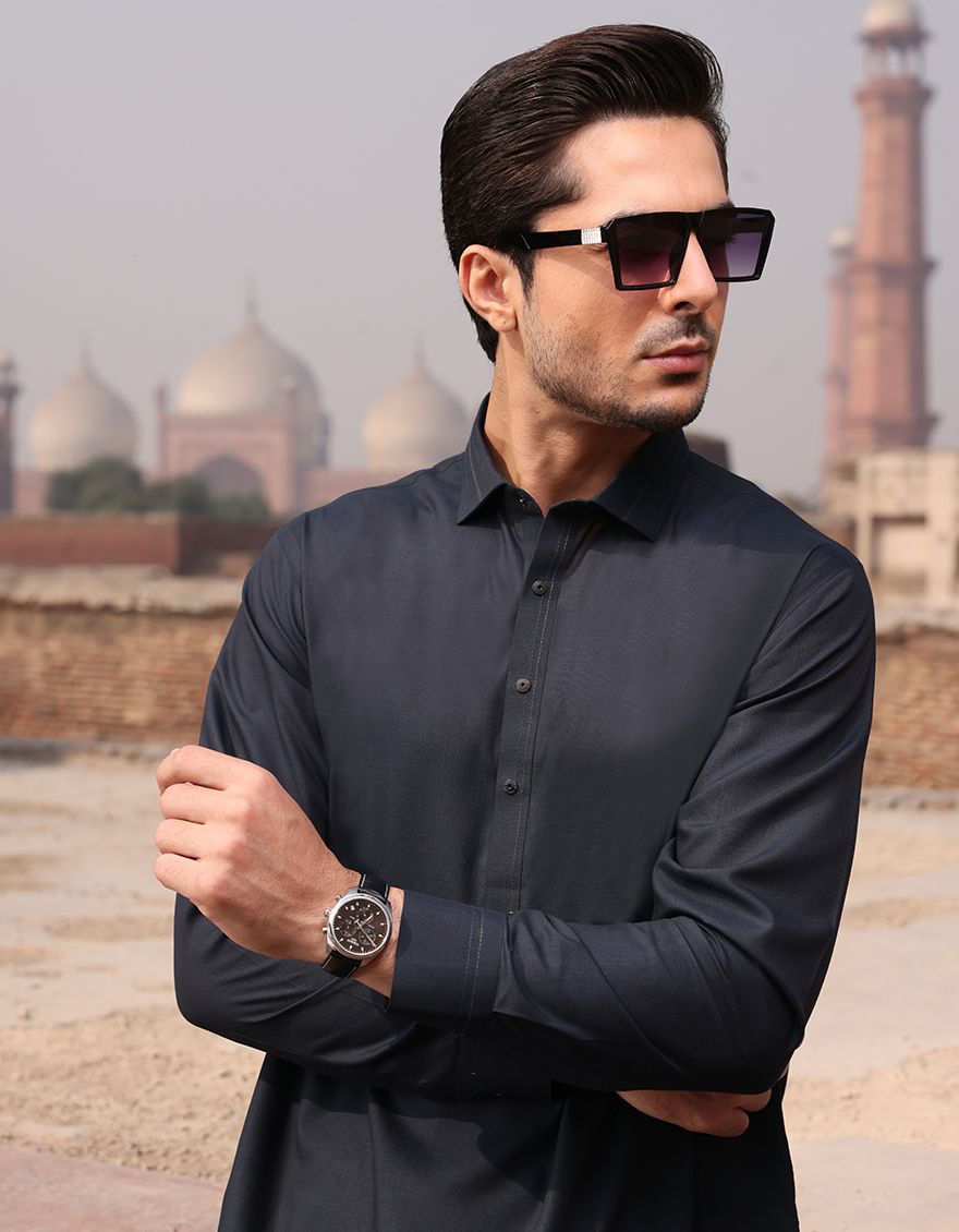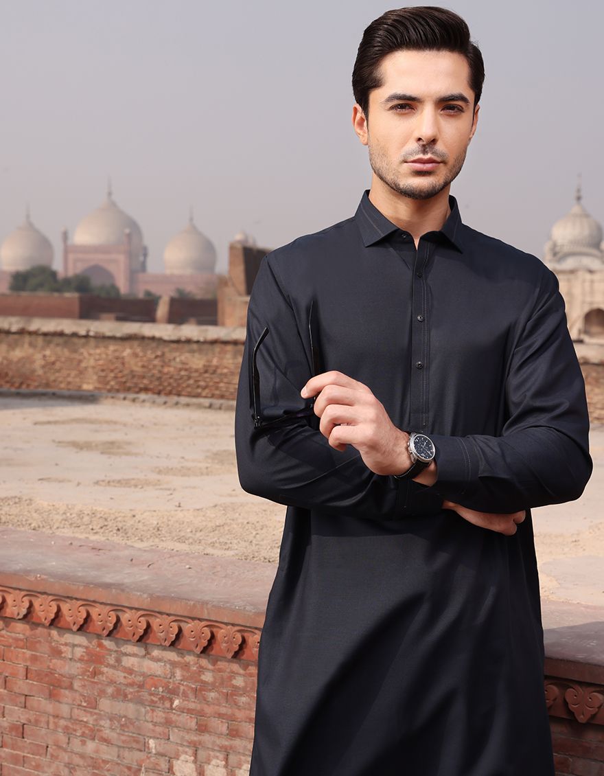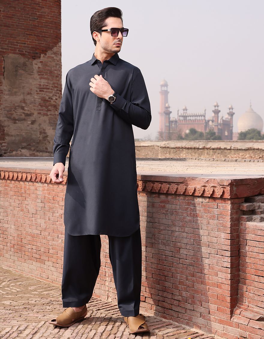 Classic Fit Kameez Shalwar Stitched In Premium Blended Fabric With Shirt Collar.