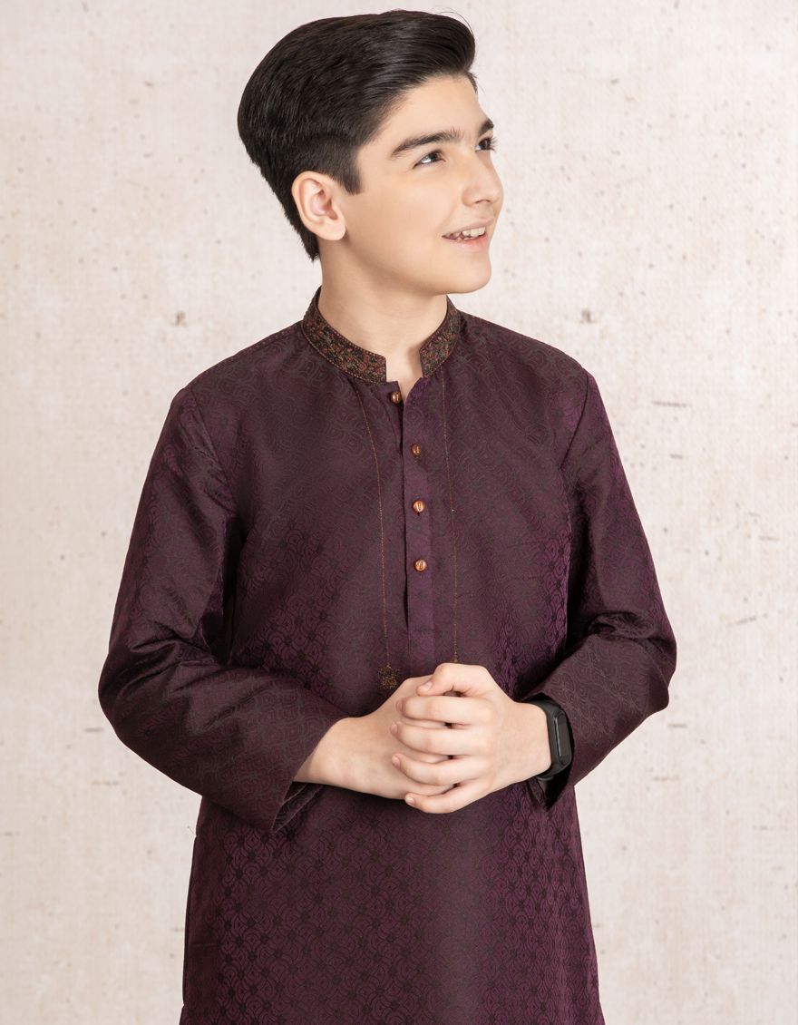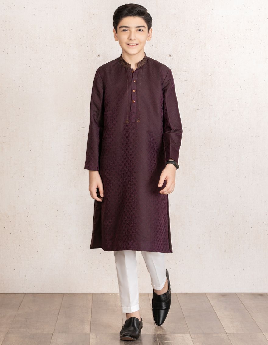 Formal Special Kurta For Kids With Computer And Hand Embroidery On Collar.