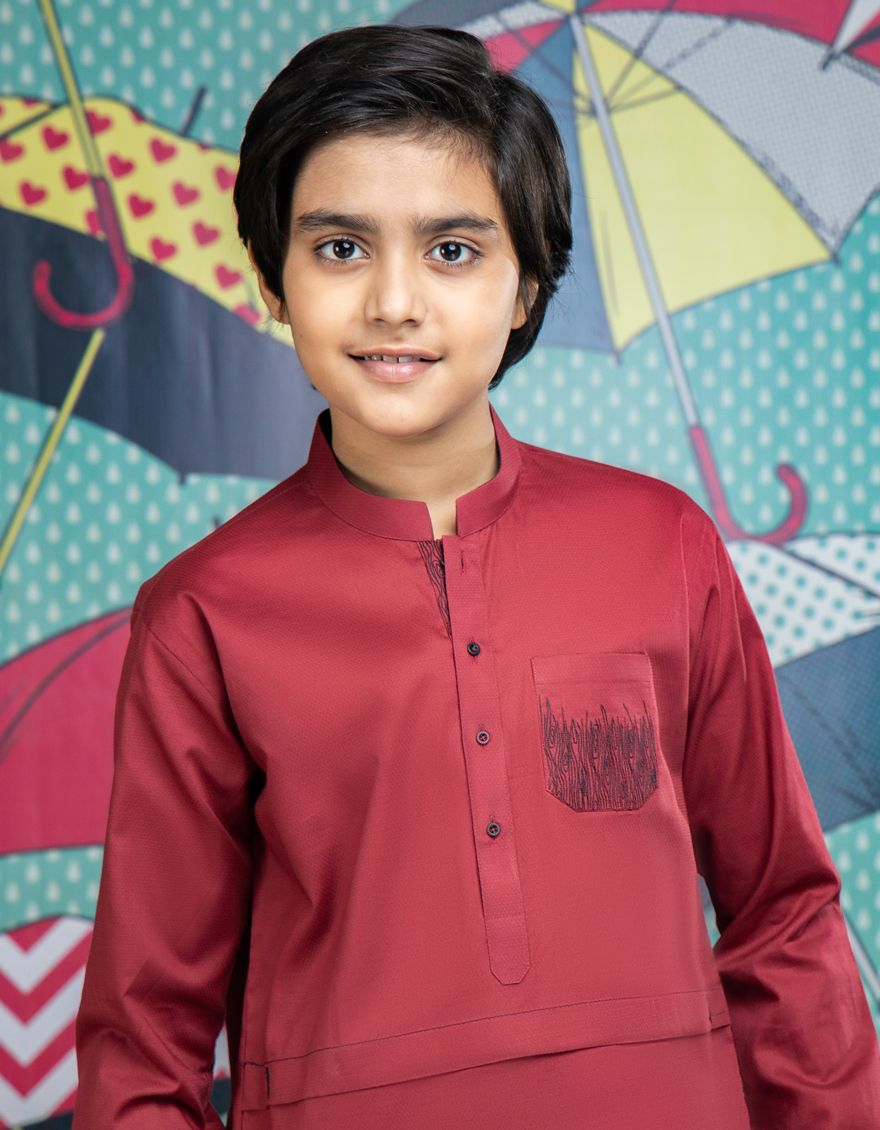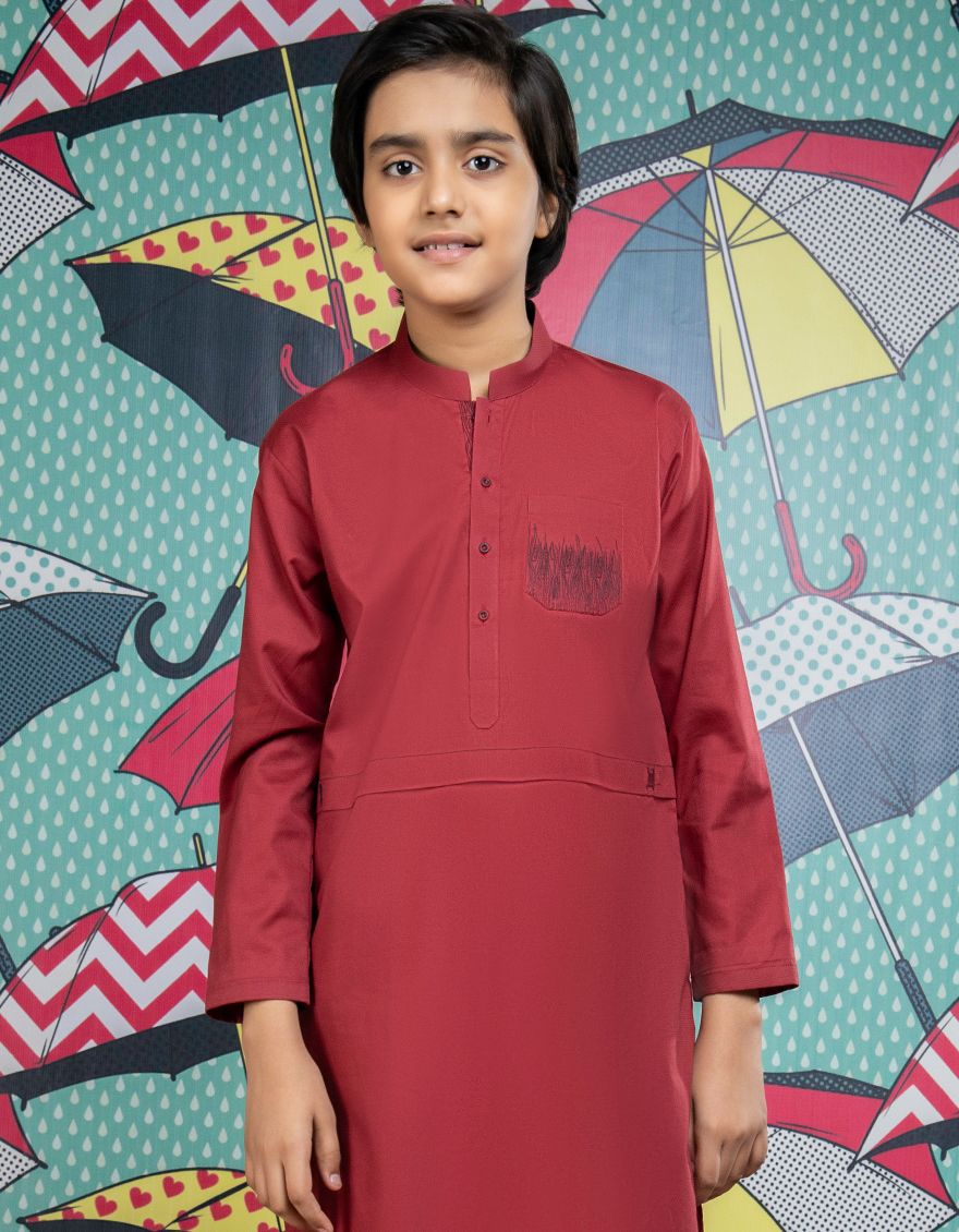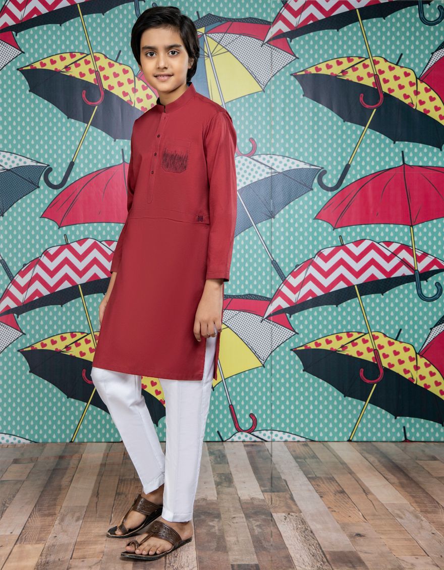 Casual Kurta For Kids With Computerized Machine Embroidery On Front Pocket & Cuts Work On Front