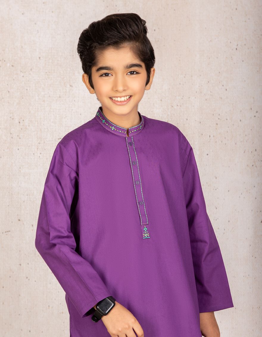 Casual Kurta For Kids With Computer Embroidery On Front.