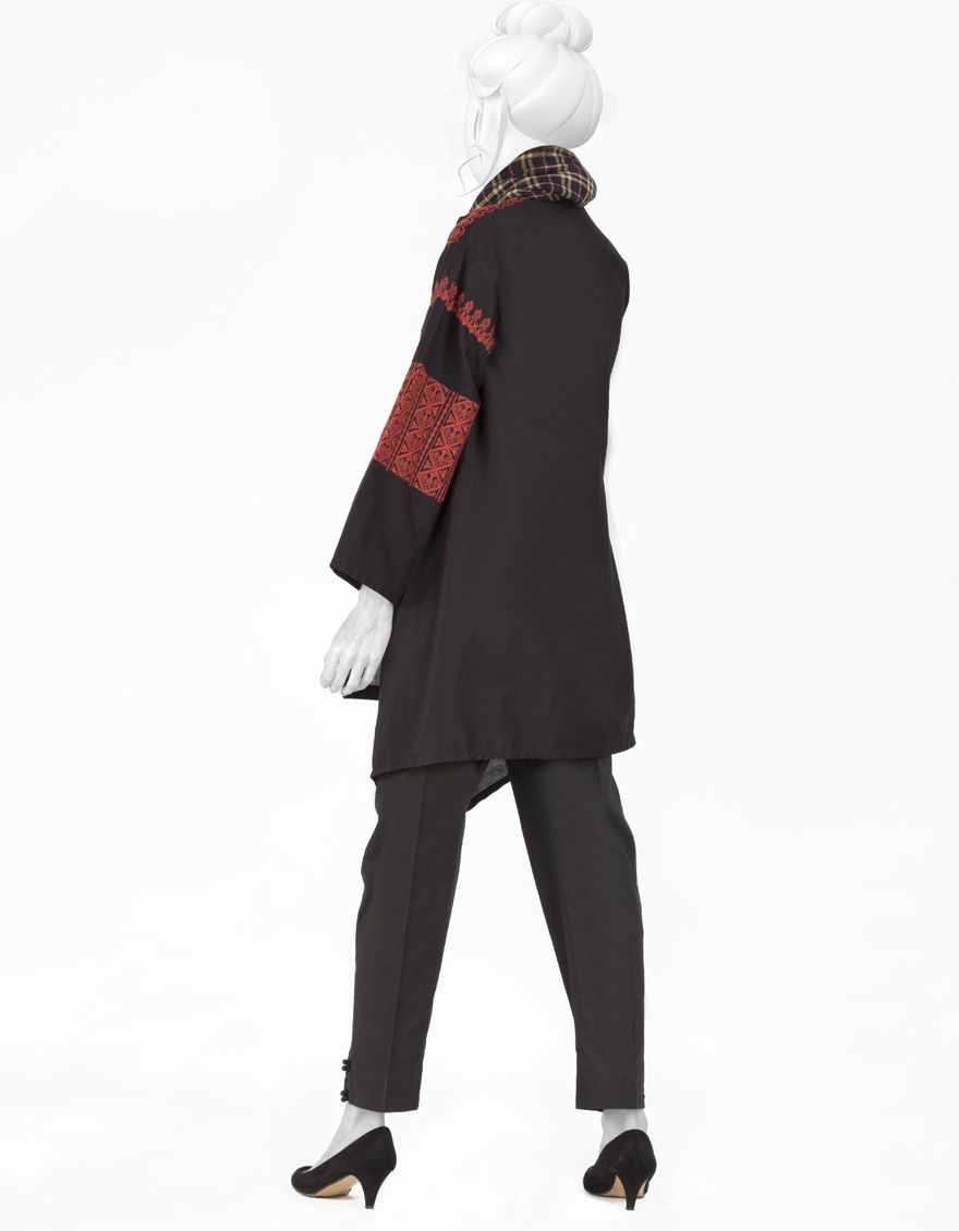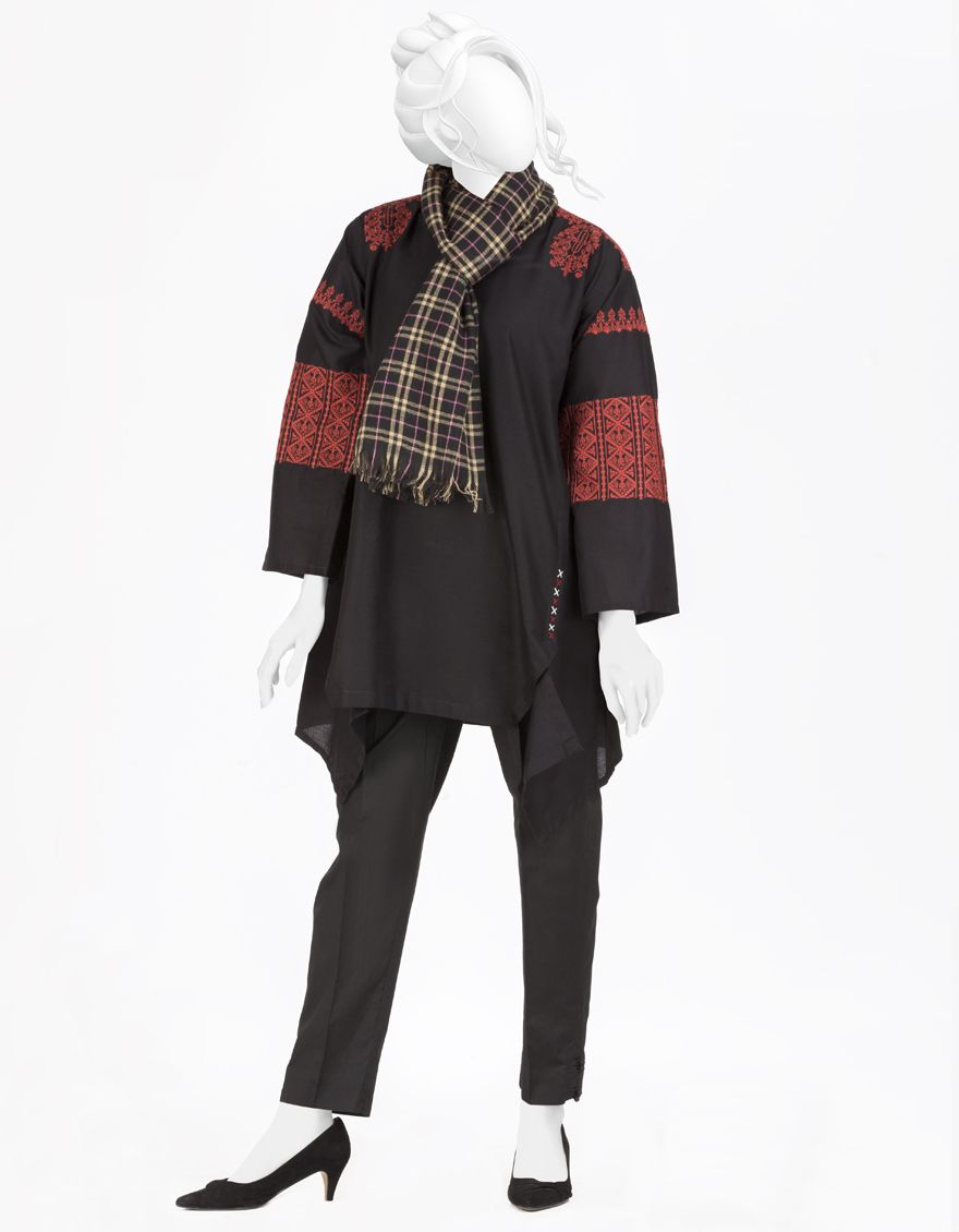 Style Cut: Drop Side Cut With Embroidered Shoulder And Sleeves
