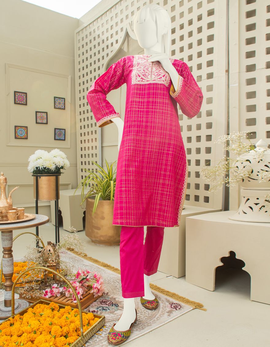 Collection Type: Embroidered Yarn Dyed Textured Fabric Shirt - Dyed Basic Lawn Trouser