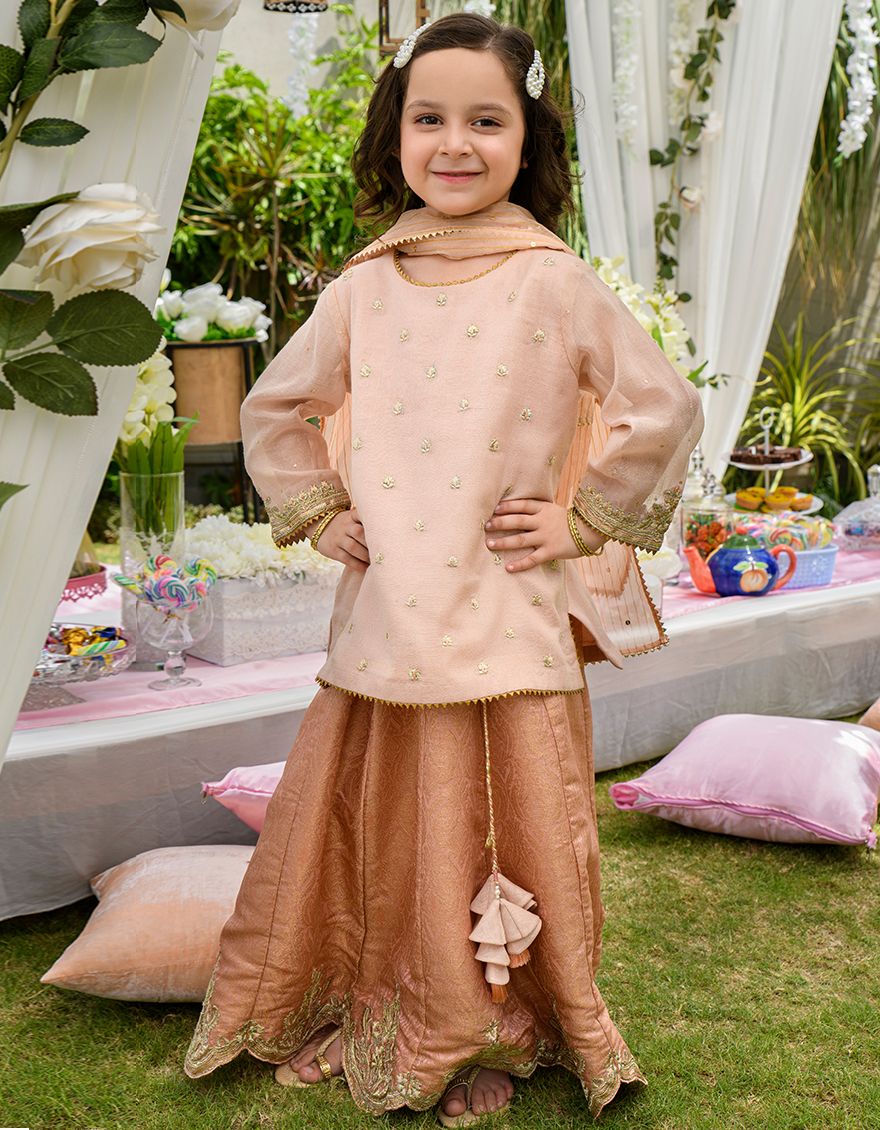 Description: Embroidered Straight Shirt Paired With Embroidered Banarsi Lehenga, Further Embellished With Handmade Tassels And Organza Dupatta