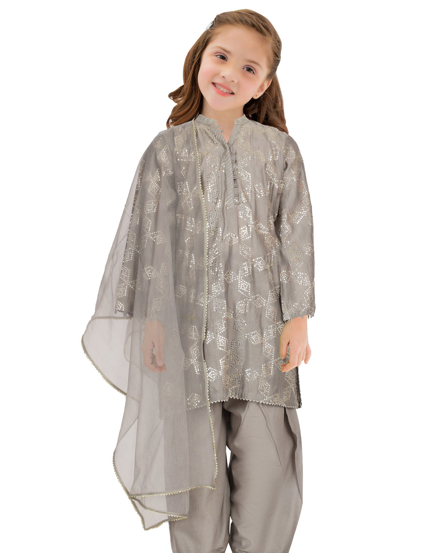 GREY CHANDERI 3PC STITCHED | JGKL-S-US-22-1558 FB/GREY KAMDANI