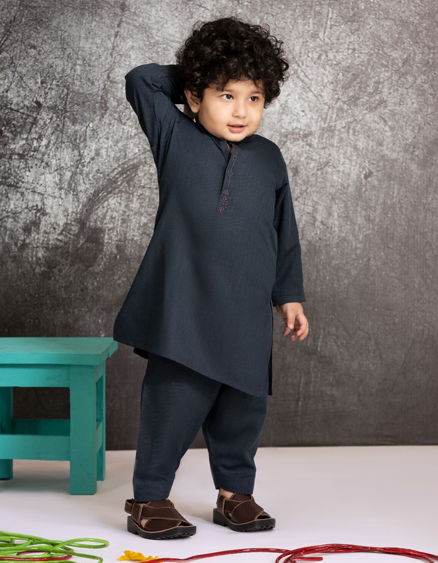 Kameez Shalwar With Minimal Embroidery On Collar And Placket.