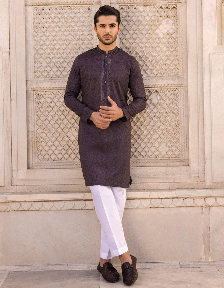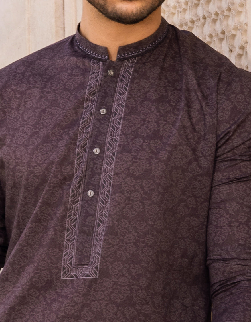Semi-Formal Lawn Kurta For Men, With S.Print And Embroidery