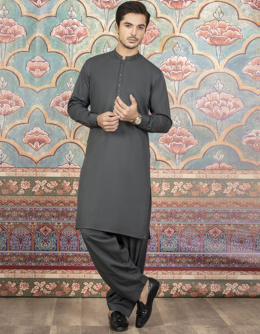 DARK GREY KAMEEZ SHALWAR | JJKS-A-US-34110/S21/JJ7194-FL