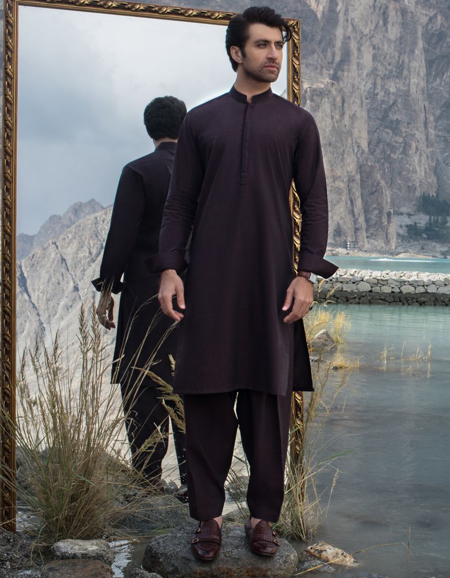 Front Fly Placket And A Plain Mandarin Collar With Straight French Cuffs.