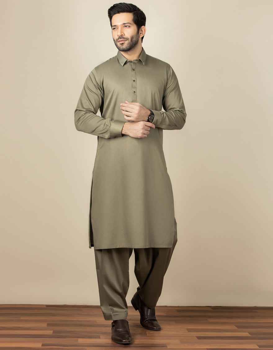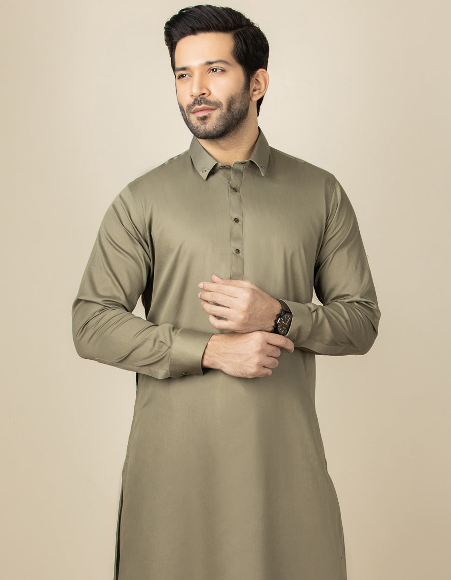 Executive Classic Fit Suit For Men, Cut Work On Collar, Placket And Cuff.