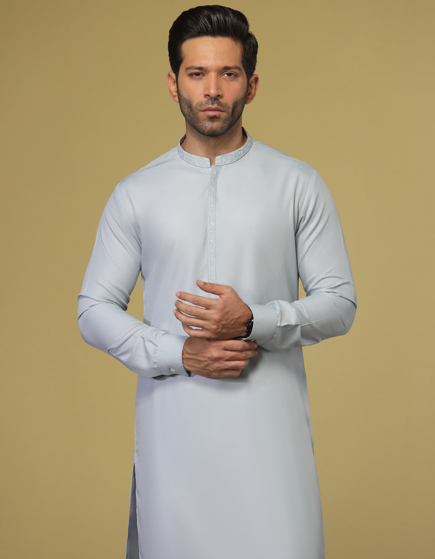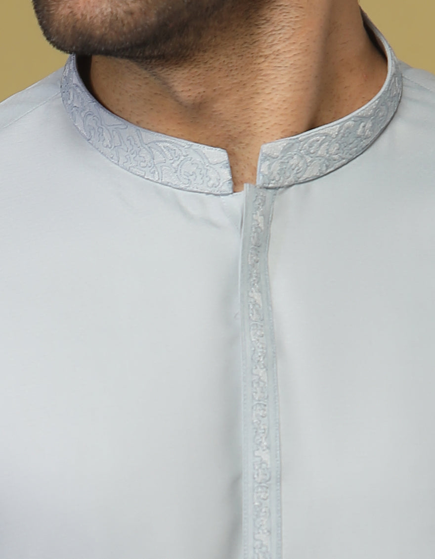 Semi-Formal Suit For Men, With Computerized Emb Work On Collar And Placket