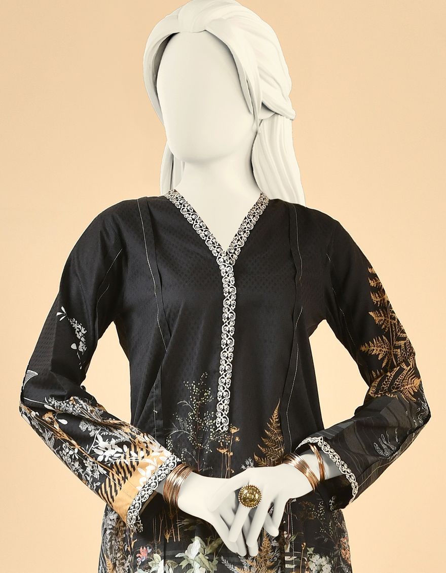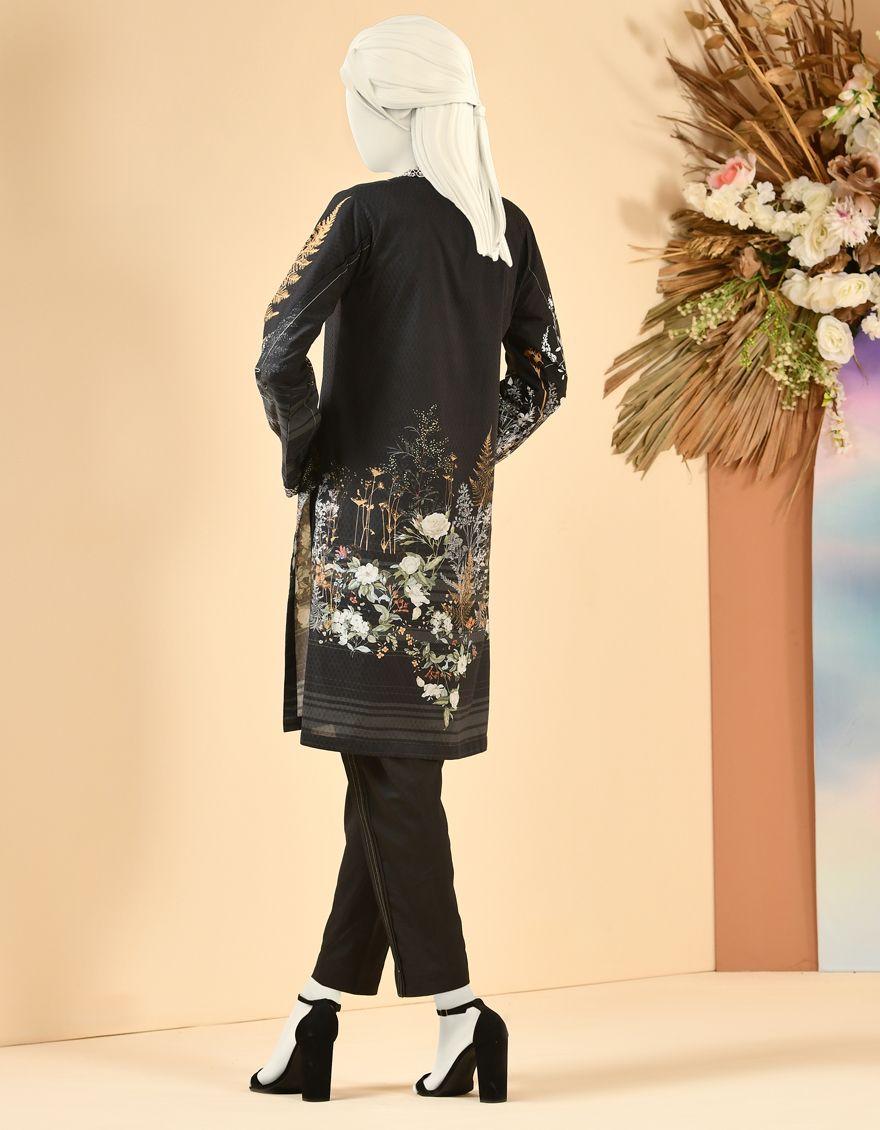 Description: 1pc Dobby Fabric Printed Kurti Stylized With Embroidered Border On Neckline And Pleats Used On Front And Sleeves.