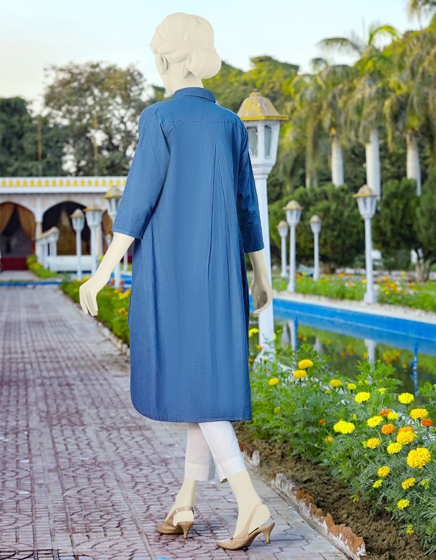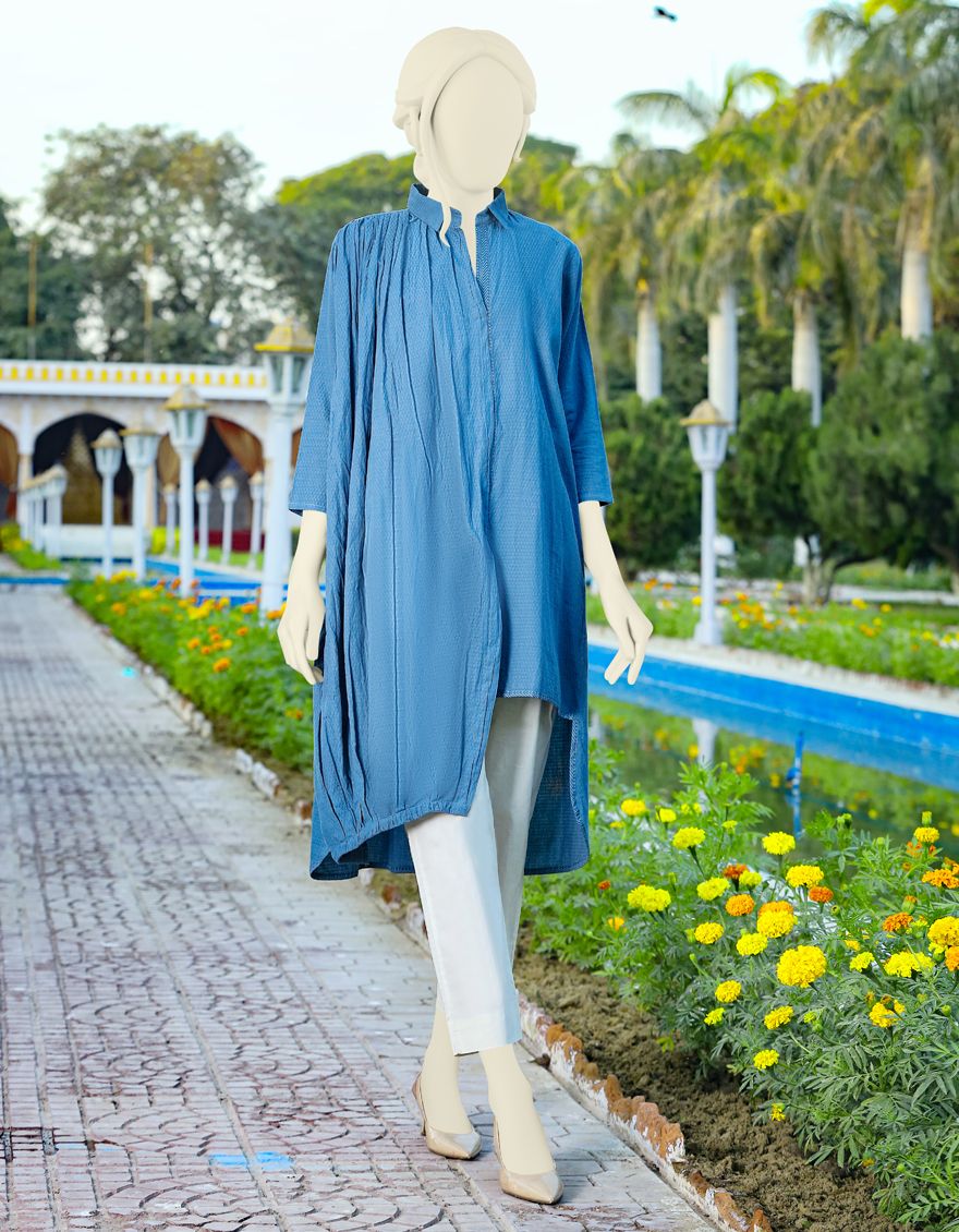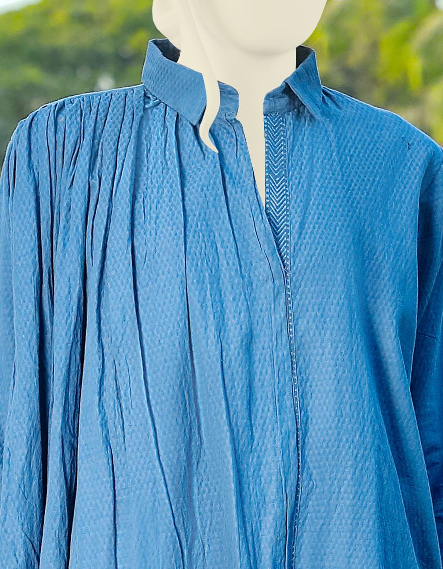 Collection Type: Basic Dyed Crushed Textured Fabric Shirt With Block Print Border