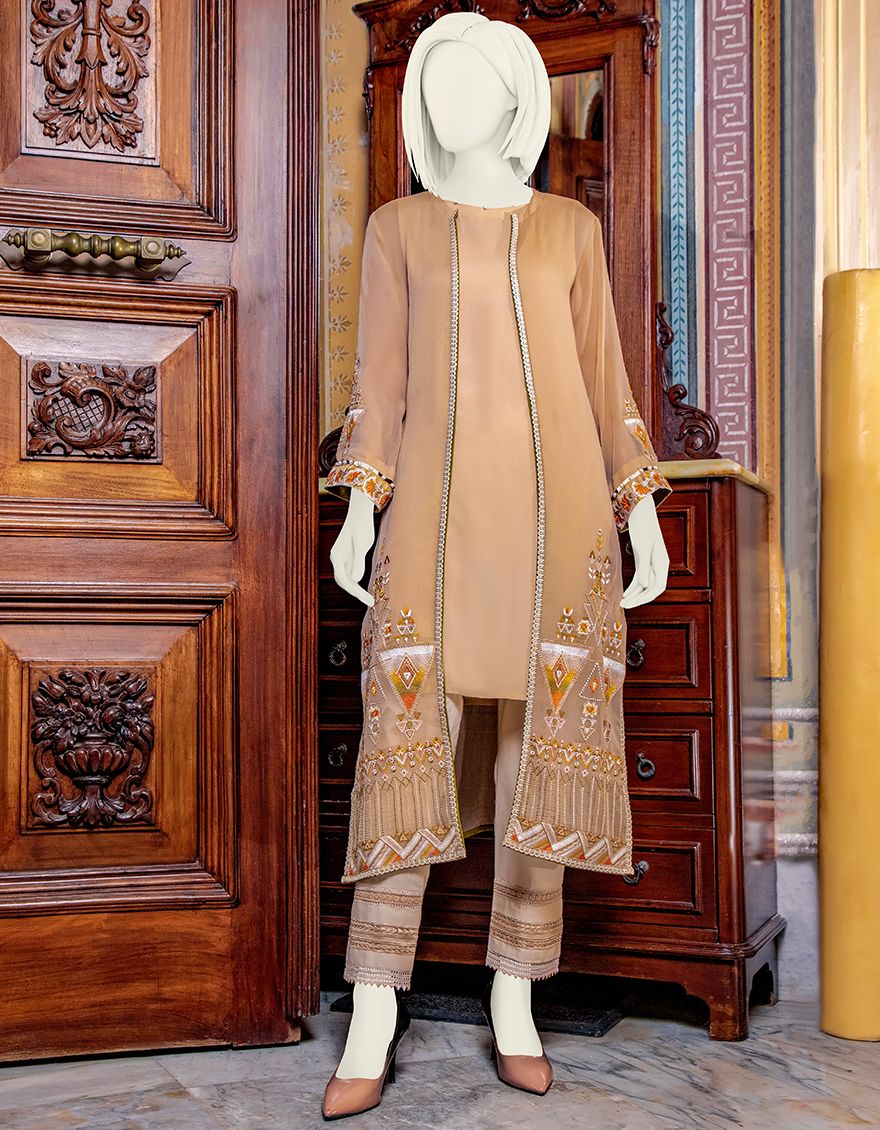 Collection Type: Embroidered Dyed Bemberg Chiffon Shirt With Crape Inner
