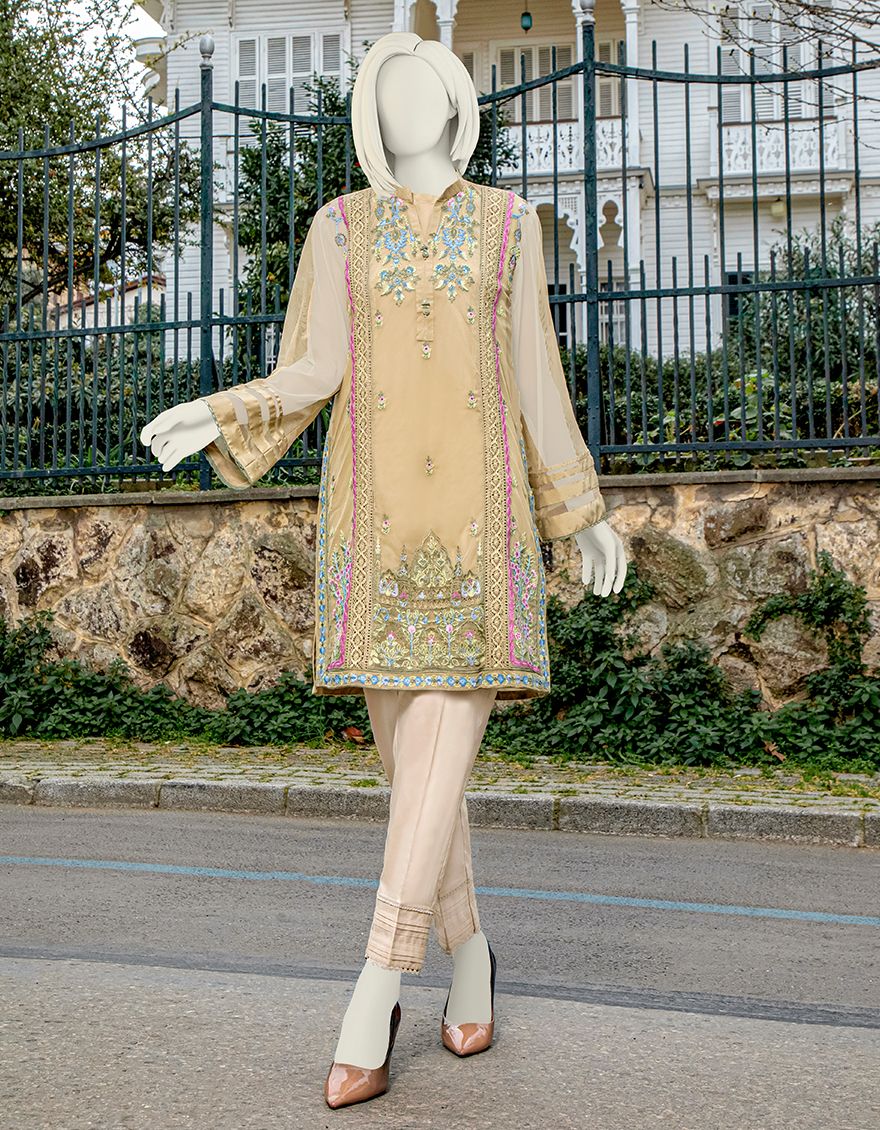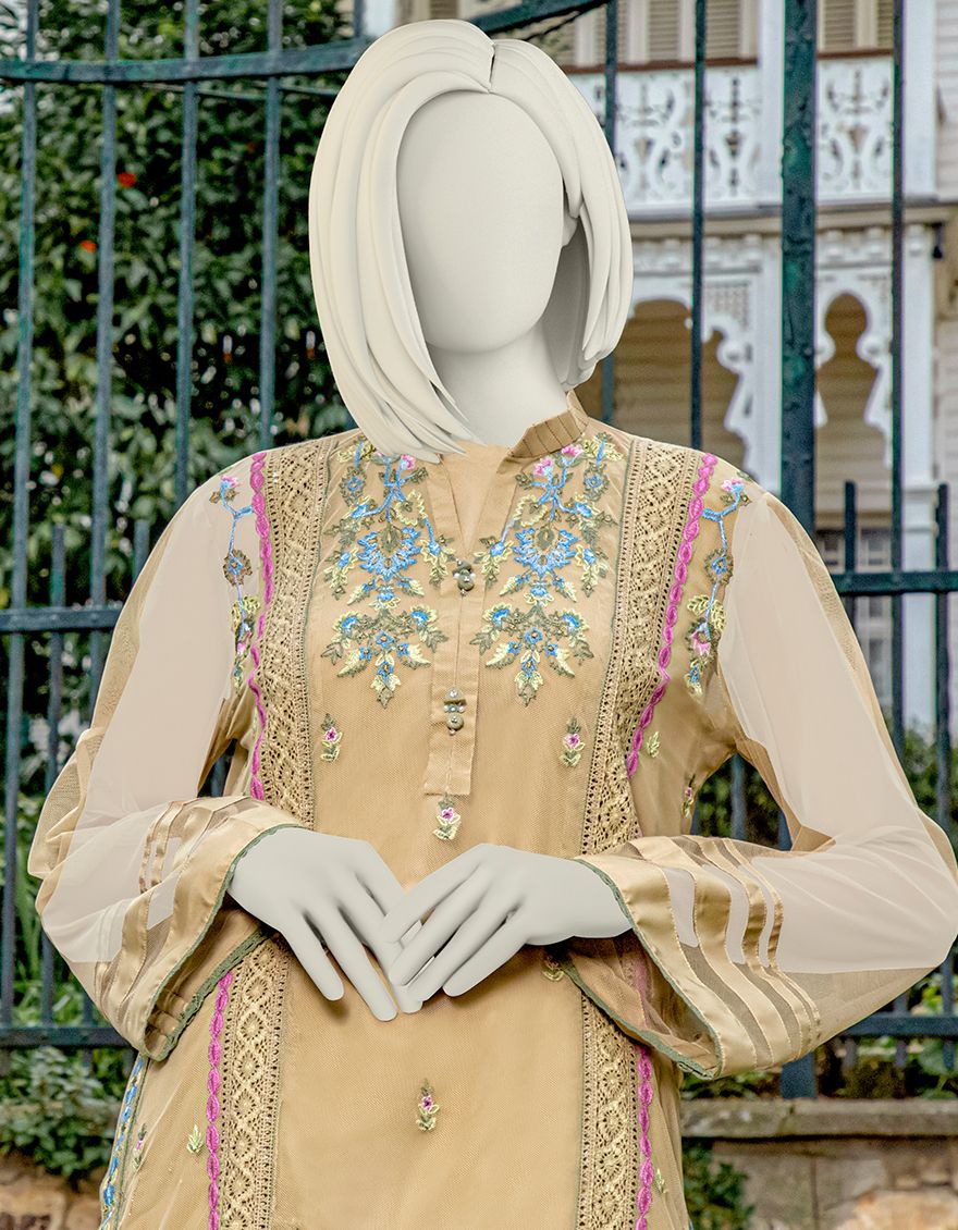 Collection Type: Embroidered Dyed Poly-Net Shirt With Crape Inner