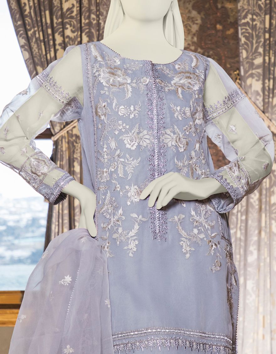 GREY ORGANZA 3PC UNSTITCHED | JJLS-S-JFU-US-21-703 FB/MF-663