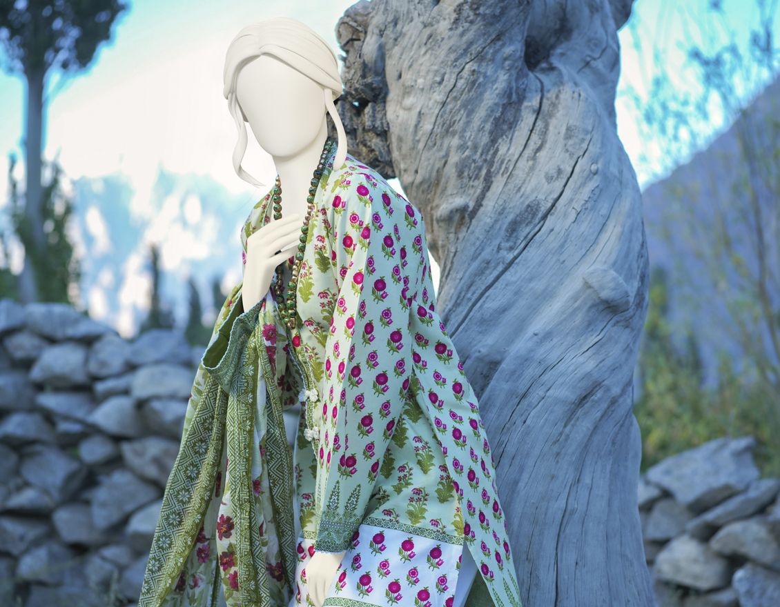GREEN CAMBRIC 3PC UNSTITCHED | JJLS-W-JW-US-21-1756 FB/AURA