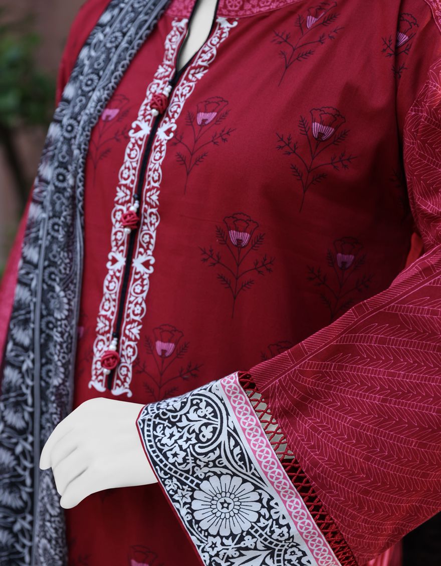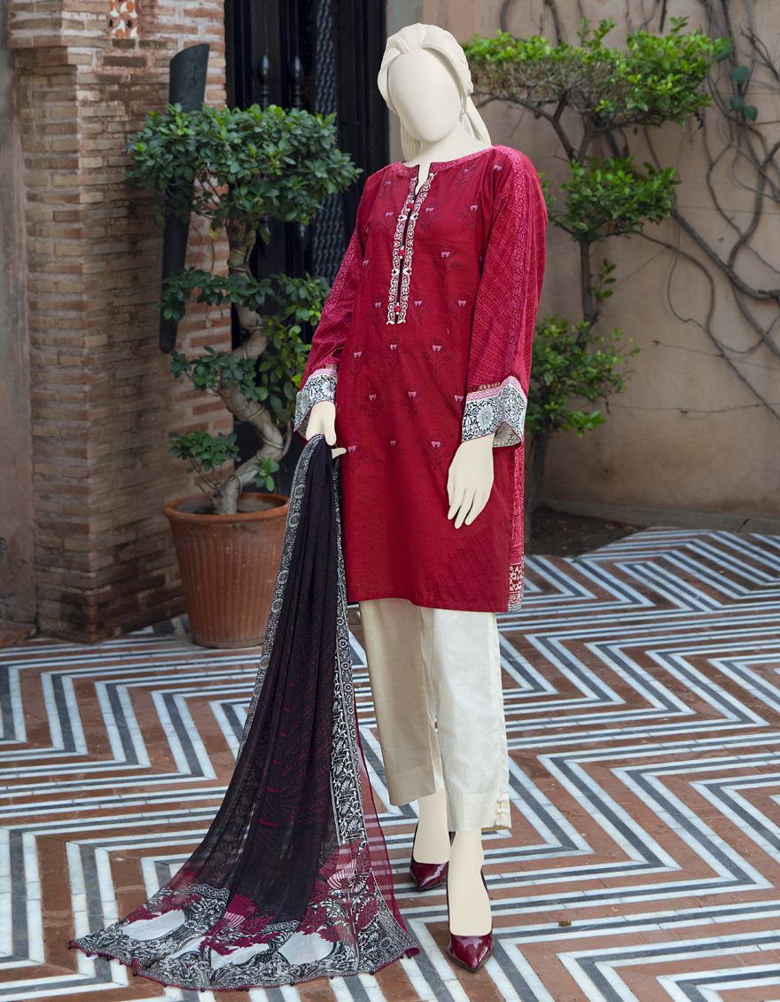 RED-BLACK CAMBRIC 2PC UNSTITCHED | JJLS-W-JW2-US-21-7033 FB/LEMI