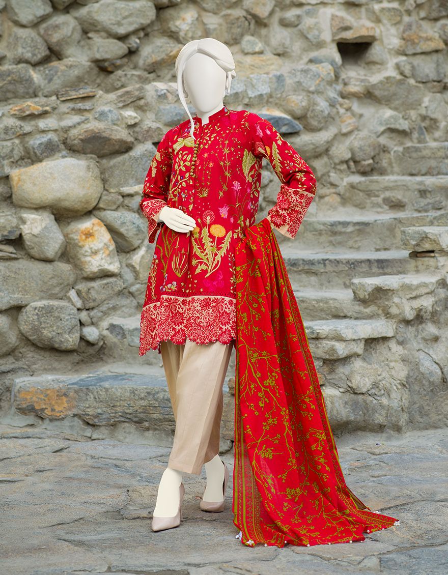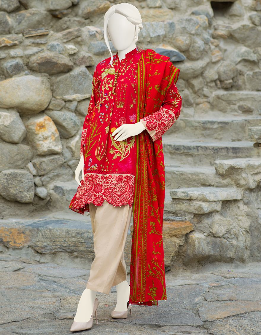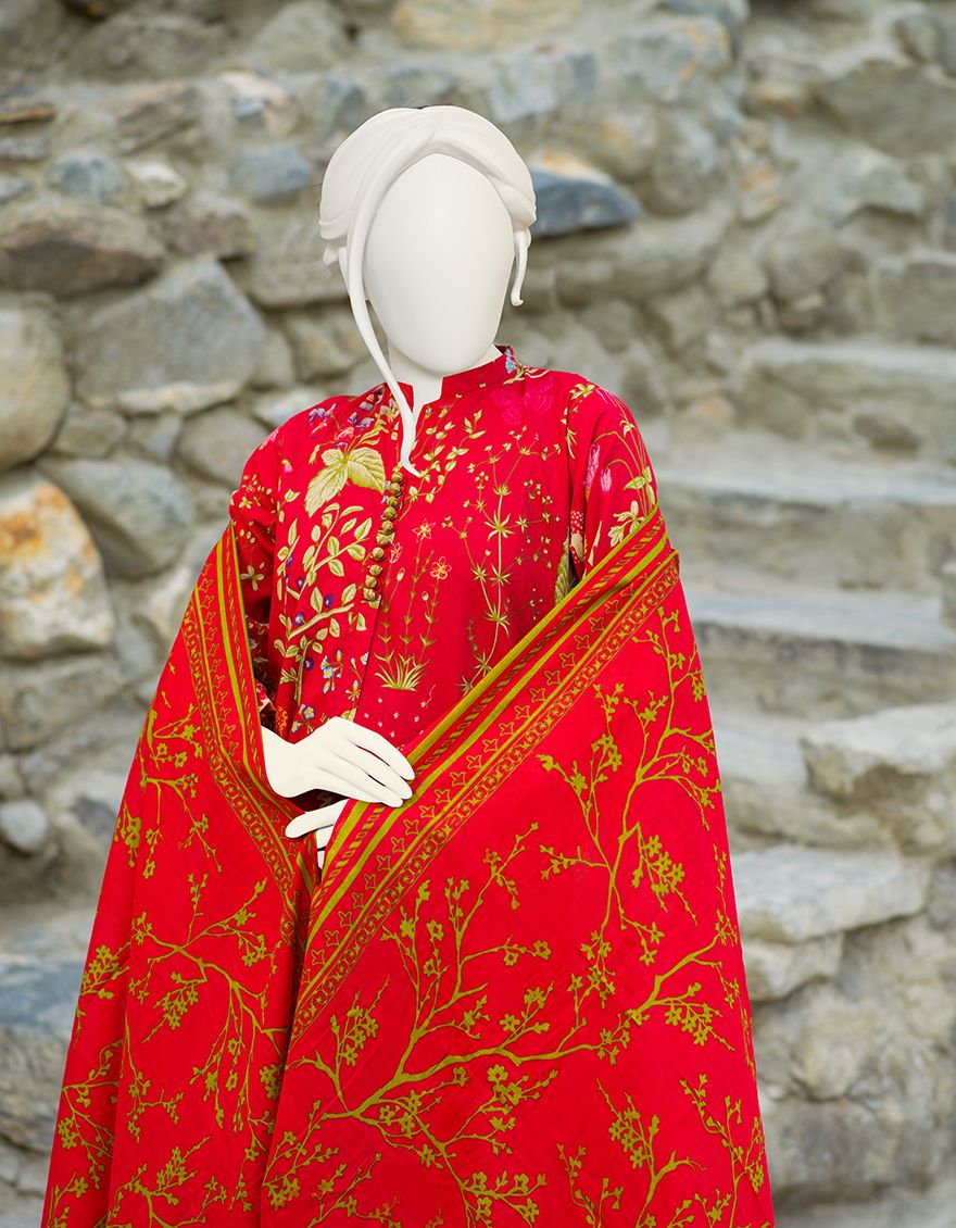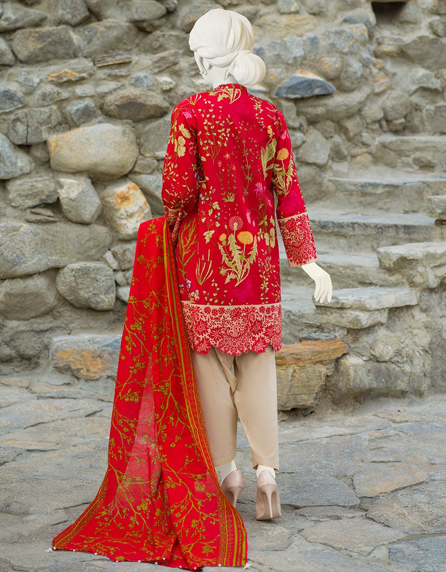 BLOOD RED CAMBRIC 3PC UNSTITCHED | JJLS-W-JWU-US-21-1787 FB/BAHITI